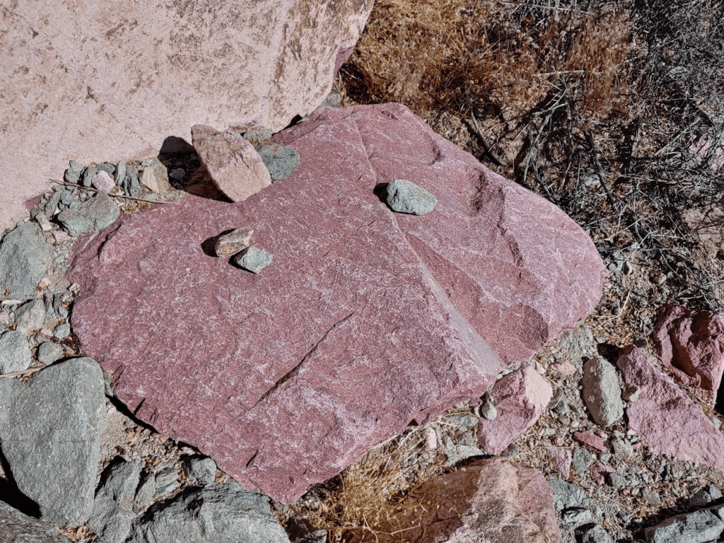 It was much warmer now, so I shed all my layers. I noticed that many of the rocks had a remarkable reddish pink color. This is no doubt why the name “Red Top” appears on the benchmark at the summit.