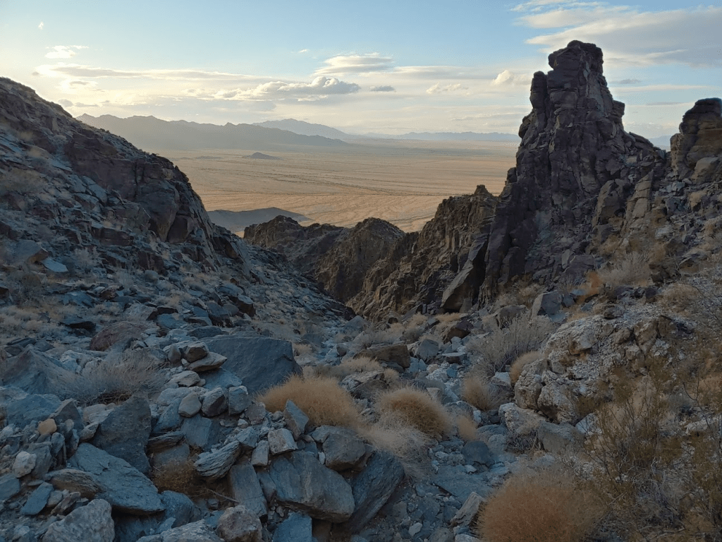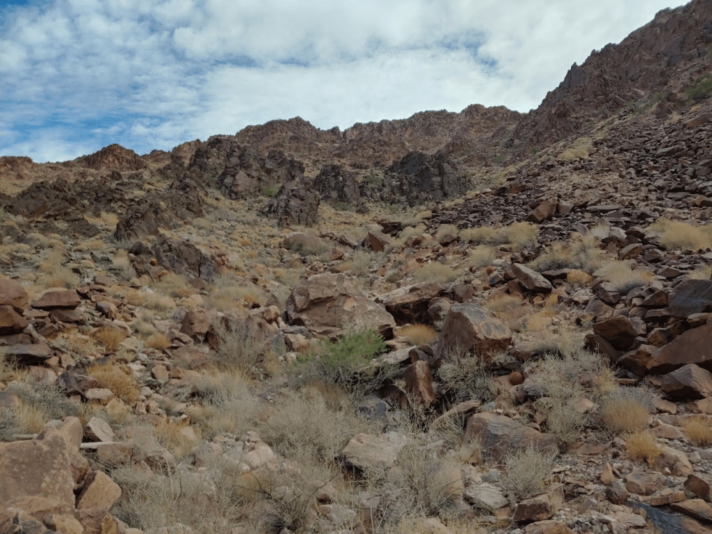 This is very seldom climbed peak, so I didn’t have much information on it. The reports I could find indicated a relatively easy ascent up a canyon on the western side. I made my way across the open desert and started climbing.