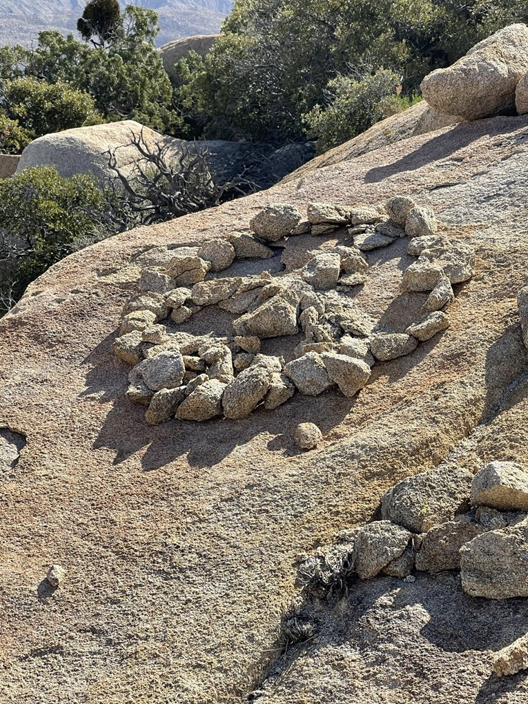 I began descending Elder to the north. The terrain was even harder on this side than it had been on the way up. House sized boulders and thick brush really impeded my progress. I couldn’t find a way to descend directly north so I started cutting across to the west. I couldn’t find a way down that side either, so I went back to the north side. I eventually found a way through with a little class 3 downclimbing. At one point I found what looked like a peace symbol made out of rocks.