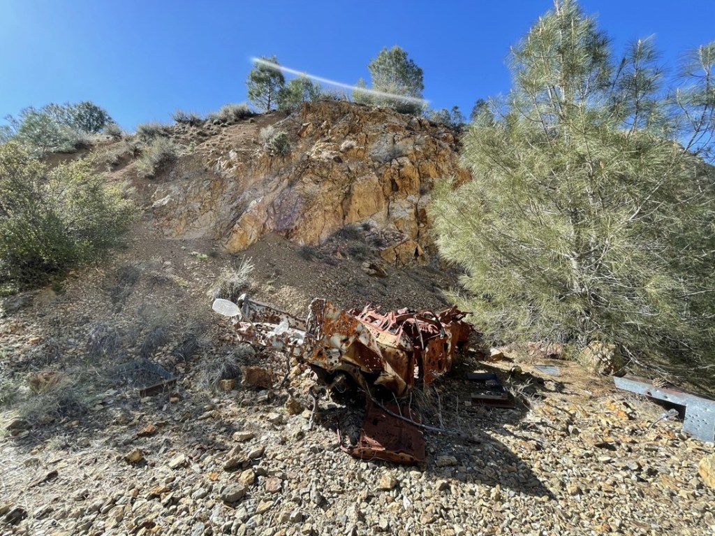 I followed a narrow trail up past the car and saw a mine shaft in one of the hillsides.