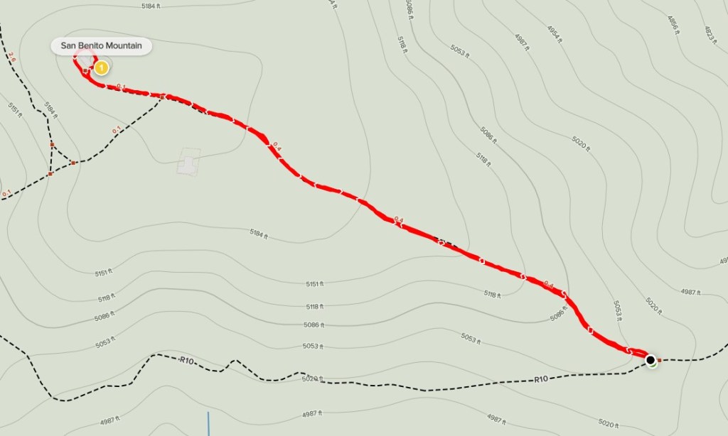 I got back in the car and drove the final few miles to San Benito Mountain. The summit road was marked closed, so I parked about a half mile below the top. I could have easily driven the rest of the way, but I wanted to get a little more hiking in. I started this hike at 5:15pm from 5020 feet.