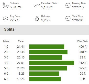 I head back down after a short break. I reached the car again at 3:40 pm. This hike totaled 6.31 miles, 1198 feet elevation gain, and 2:36:04 total time.