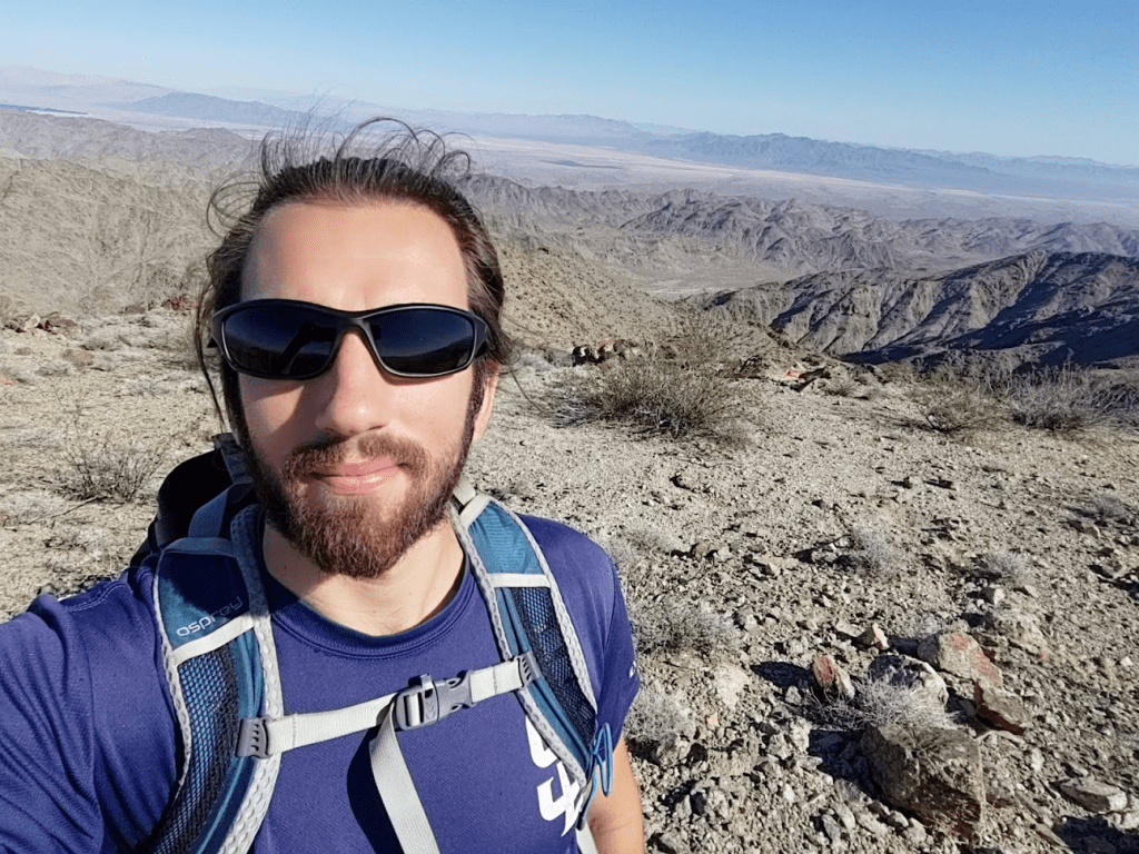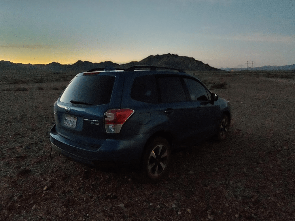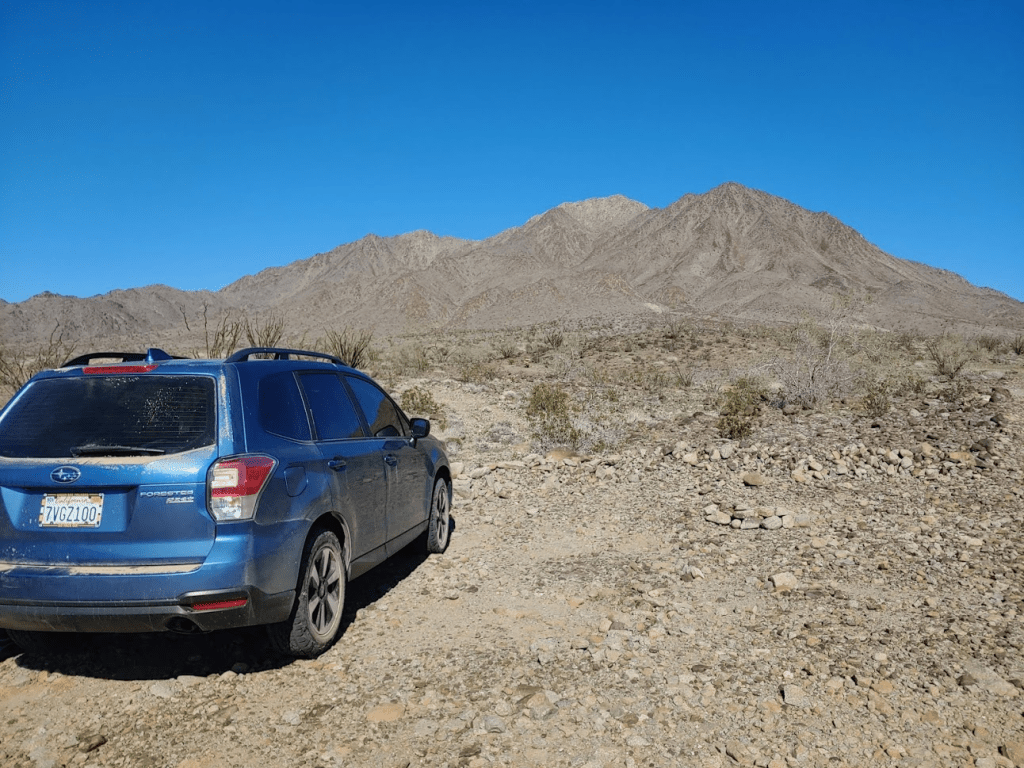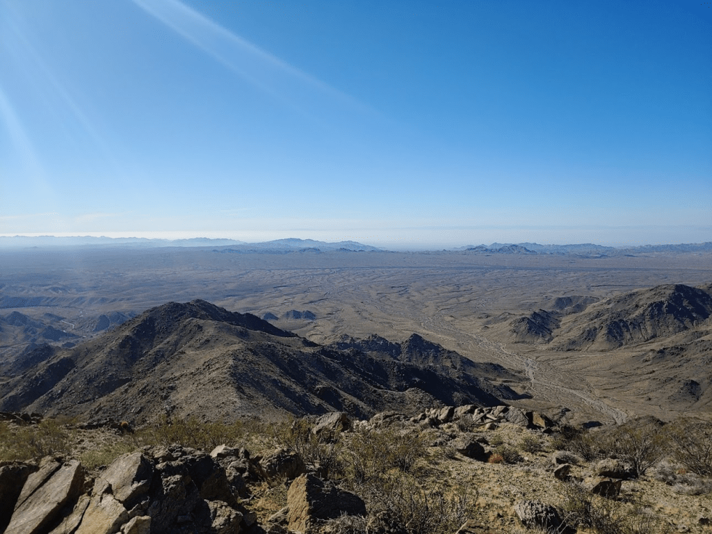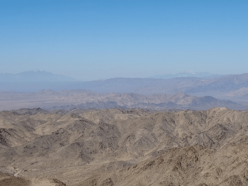 This weekend would take me to the southeastern corner of California to climb some random peaks on the Sierra Club Desert Peaks Section (DPS) list. The DPS peaks in this part of the state generally are the highpoints of small mountain ranges, many with over 2000 feet of prominence. This part of the desert is extremely arid, and the scenery can be kind of bland compared to other desert areas. Interstate 10 cuts through this remote corner of California on its way from Los Angeles to Phoenix. The small town of Blythe is a nice stop along the freeway, sitting right on the California/Arizona border. I wrapped up work a little early on Friday afternoon and hit the road at 4:15pm. I primarily took state and county highways through Julian and Borrego Springs before stopping at the small desert town of Mecca where I got a sandwich at Subway. From there it was a short drive to the public land just outside the south entrance of Joshua tree National Park. This area is about a mile or 2 north of I-10 and is a popular area to camp for those who can’t get reservations to one of the NPS campgrounds inside the park. On this Friday night it was extremely busy, but I was able to find a nice place to park my car and sleep for the night.