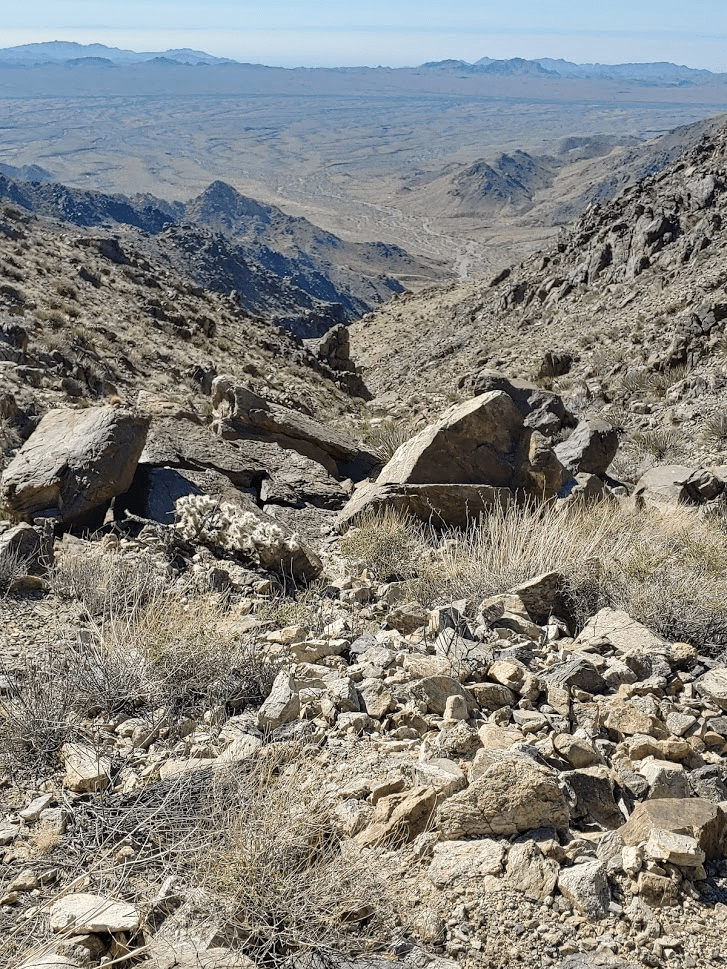 I rested for a little over 30 minutes and began the descent. Instead of taking the canyon back down, I decided to go down the ridge just west of the canyon.
