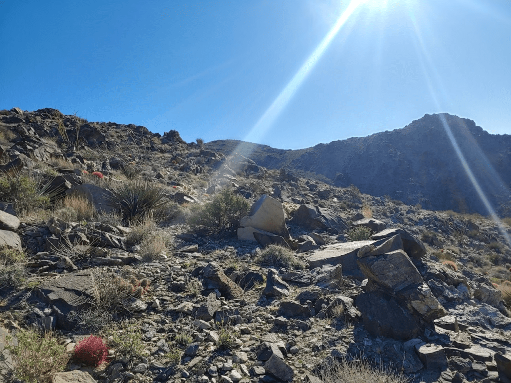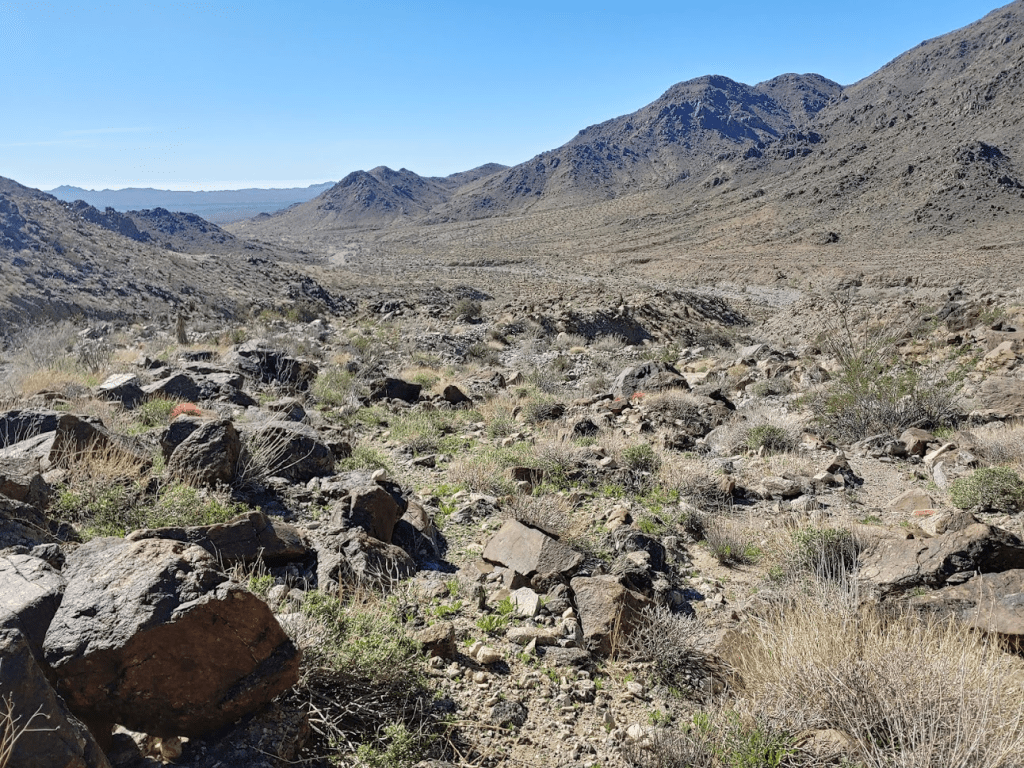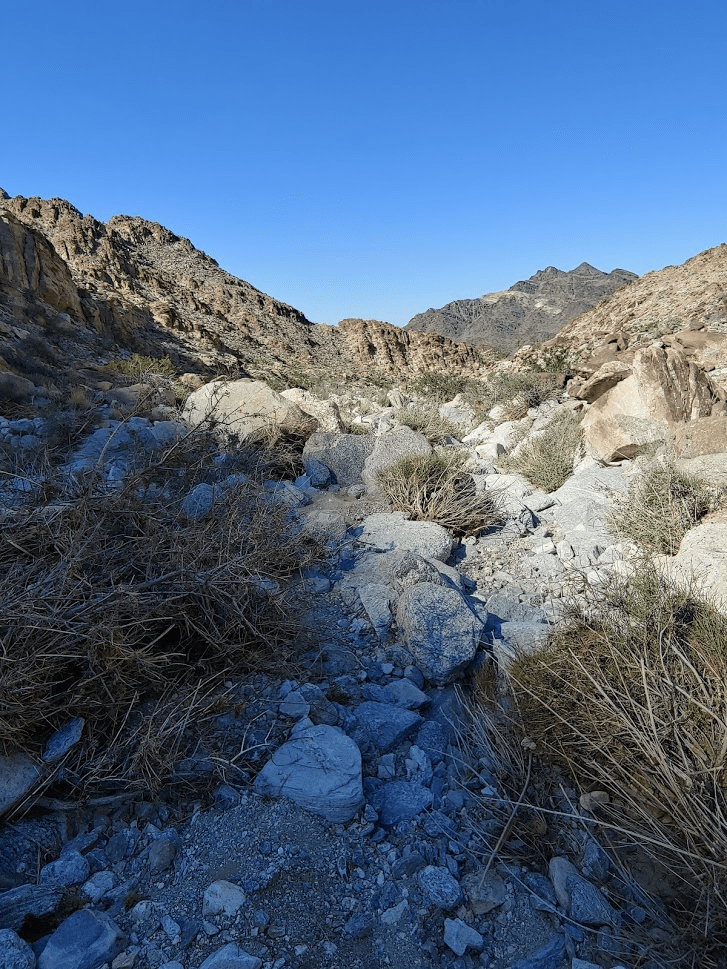 I started hiking up a wide, rocky wash.