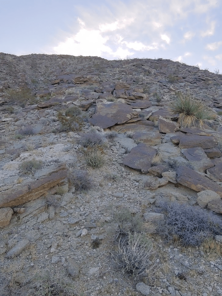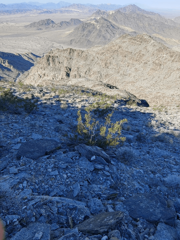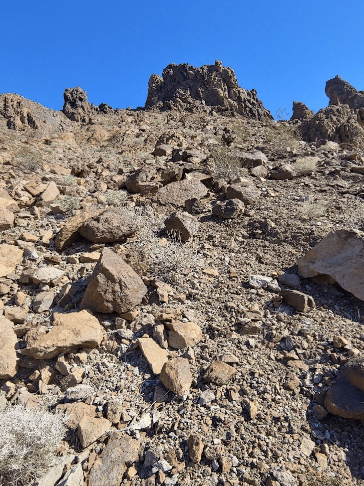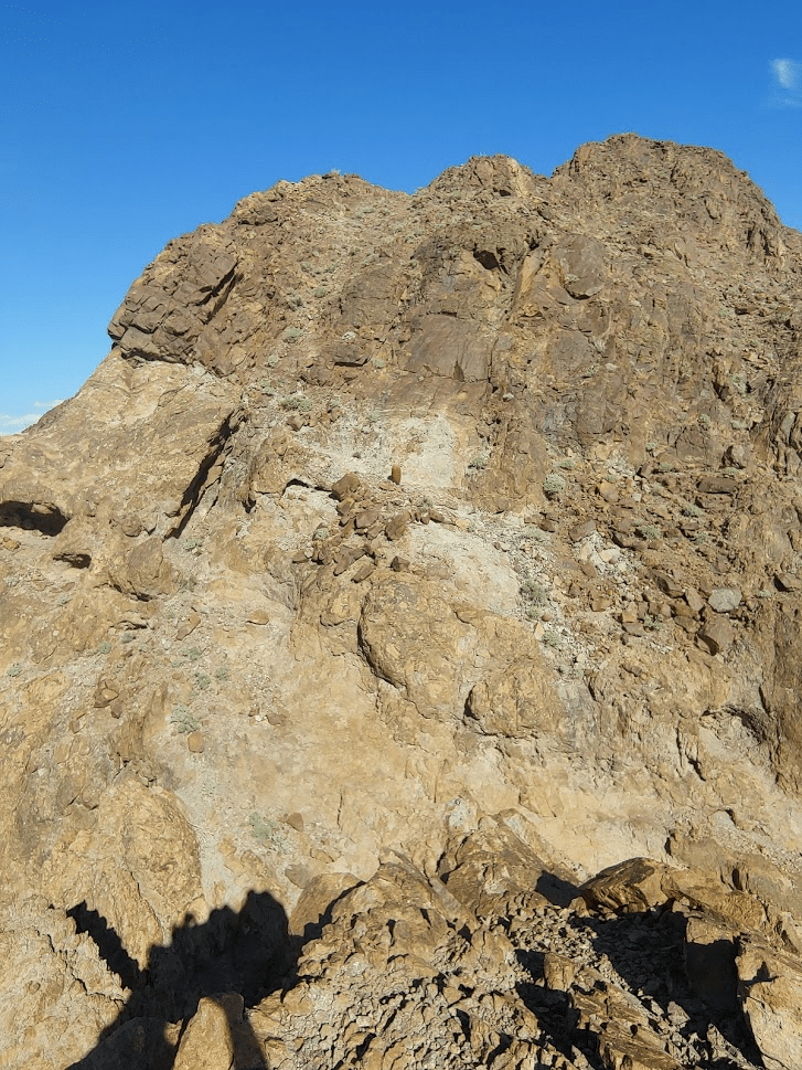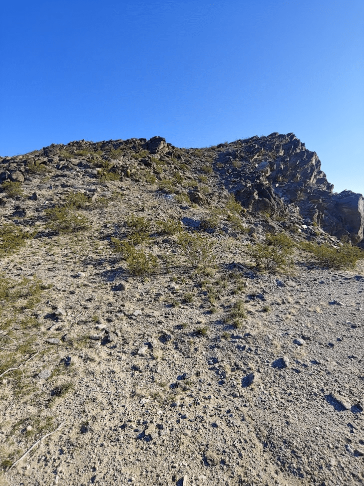 After walking about a mile up the road, the route begins up a narrow wash. I then climbed out of the wash up a very steep talus slope. The rocks were very loose, so it made it extremely tough to make progress. I eventually gained the ridge southwest of the summit. I proceeded a short distance up the ridge until I came to spot where I decided it would be unsafe to proceed. The ridge was very exposed, and I didn’t feel safe trying to climb the rest of the way to the top, especially alone.