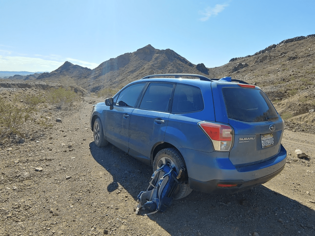 I was pretty exhausted, but I still had a long drive to get back to the freeway. I drove back to Graham Pass Road and turned north to head towards I-10. The first couple miles were pretty rough. The road goes in and out of many washes, so I was glad to have high clearance, AWD, and brand new all-terrain tires. After the first couple miles, Graham Pass turns into a really nice, well graded road that I was able to drive 30 mph on. After about 15 miles from where I had been parked, I finally reached pavement again. I headed east on the freeway to the town of Blythe where I ate at Quiznos and Jack in the Box. There really aren’t many dining options in Blythe. I also filled up on gas and got more ice for the cooler. I then drove about 30 minutes north on Midland Road and then about 4 miles on an okay dirt road to the trailhead for Big Maria Mountains High Point, which would be my objective for the next morning. I was asleep by 8:30.