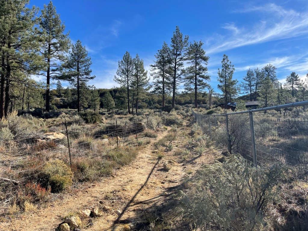 I set off west on Pathfinder Road. There is a private property sign on Pathfinder Road and a few large ranch houses on each side. I was a little uneasy, but there were people out and no one seemed to mind my presence. Previous trip reports also indicated no issue with accessing national forest land from here. I reached the end of the road and then turned left onto a rough dirt road that went north between 2 fences. I went past 2 more ranch houses on each side and then was in the clear.