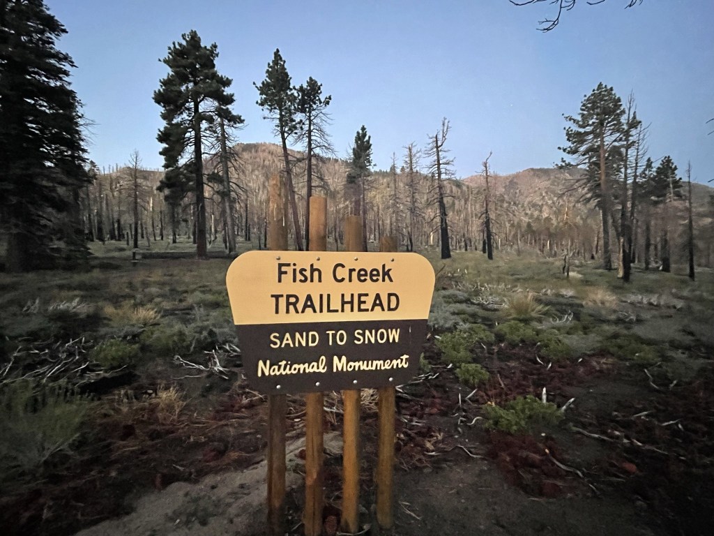 My plan for the day was to climb 3 peaks on the north side of San Gorgonio: Grinnell Mountain (10284 feet), Lake Peak (10161 feet), and Ten Thousand Foot Ridge (10094 feet). The 3 peaks lie within the San Gorgonio Wilderness; a wilderness permit is needed as of September 2020. The permit was easy to obtain on the San Gorgonio Wilderness Association website. There were ample permits available for every trailhead except for Vivian Creek (by far the most popular route up San Gorgonio). I secured my permit for the Fish Creek Trailhead, and I had driven in and slept there the night before. There is a long and bumpy 7 mile dirt road to reach the trailhead from Highway 38, but the road is in good shape and likely okay for a passenger car. I began hiking at 5:38am from 8080 feet above sea level.