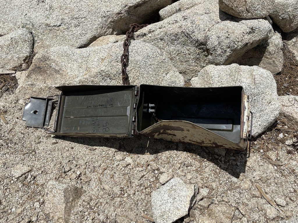 I reached the summit of Zahniser at 8.4 miles and once again found an empty ammo container with no register inside. Is someone out here stealing registers?