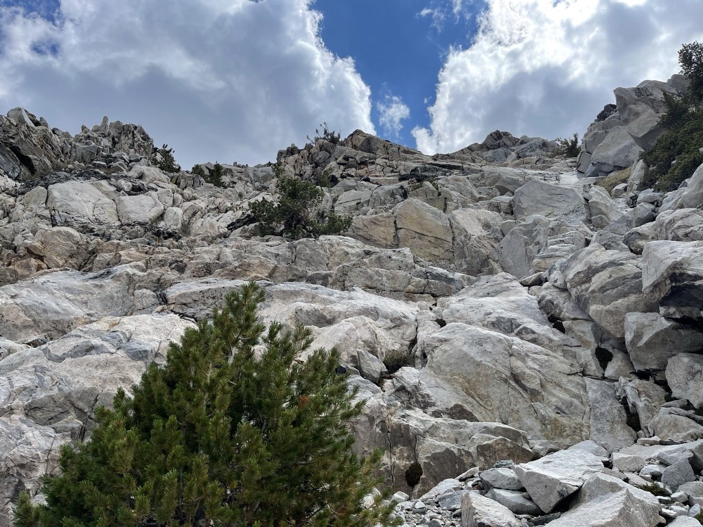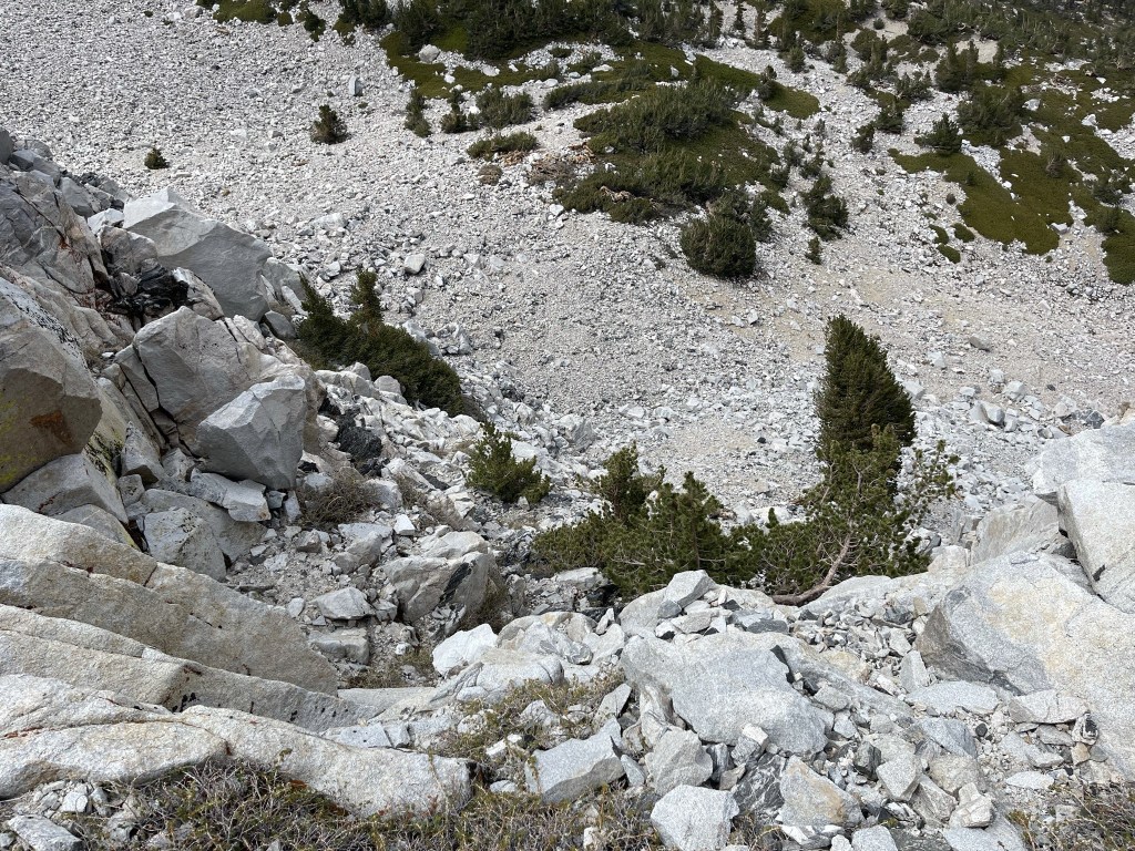 I angled too far to the left once I got near the bottom and encountered some class 3 downclimbing. I think if I had descended in more of a straight line the terrain would have been easier.