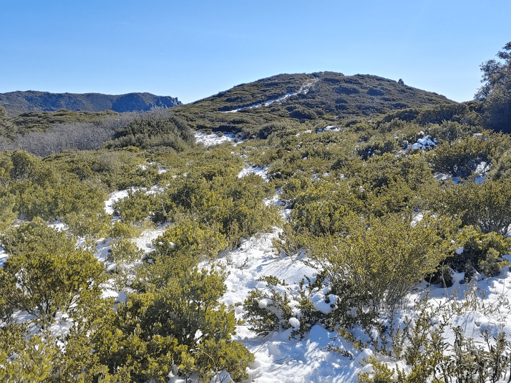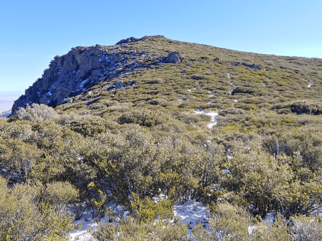 The rest of the way would be trying to follow this trail through thick brush. I use the word “trail” here in the loosest sense of the word. There might have been a trail here at one time, but it is all but gone now. The next mile actually wasn’t too bad. The brush was knee high, so I was able to make decent progress. Following the GPS tracks of others, I stayed near the crest as it makes a few minor ups and downs.