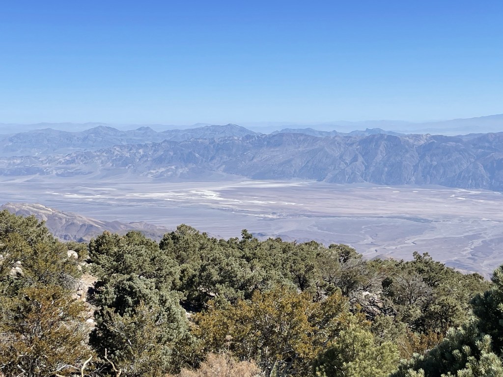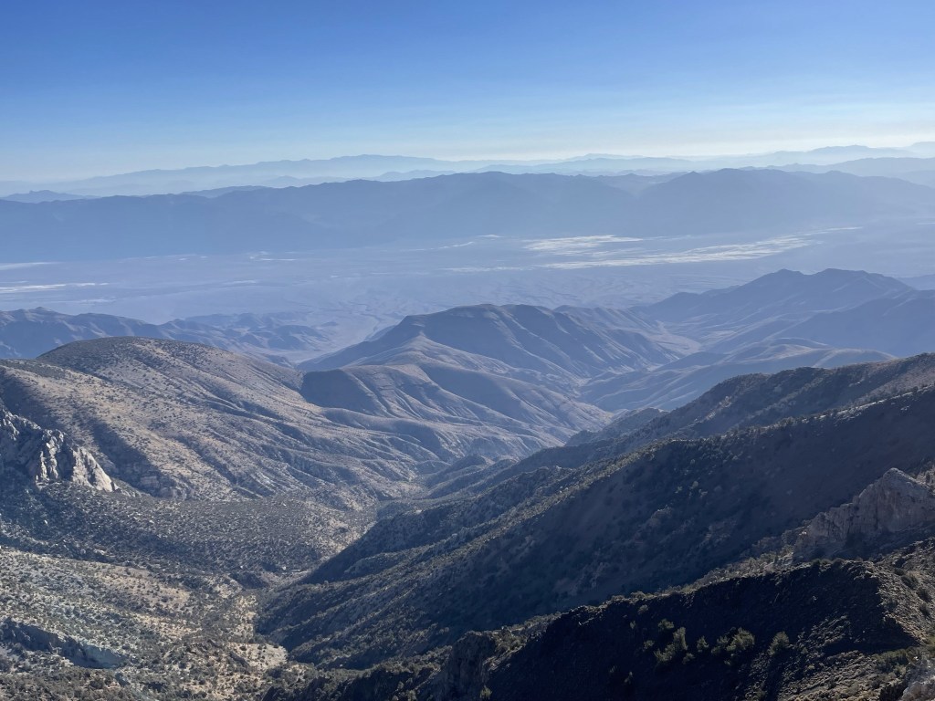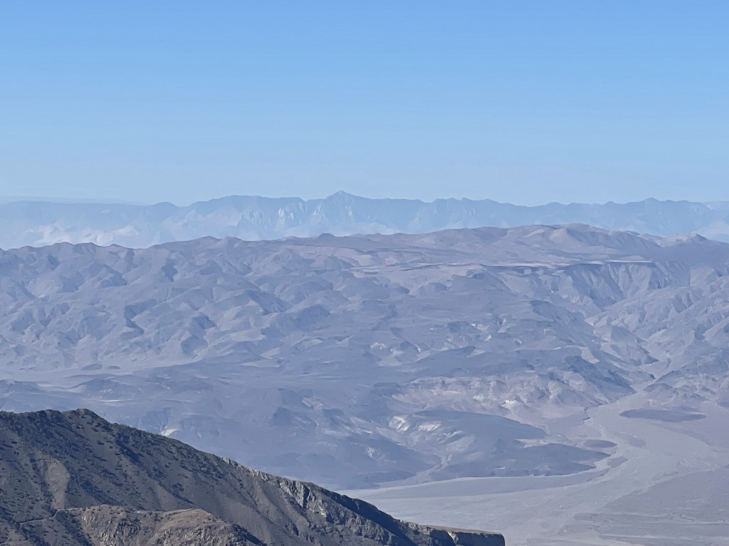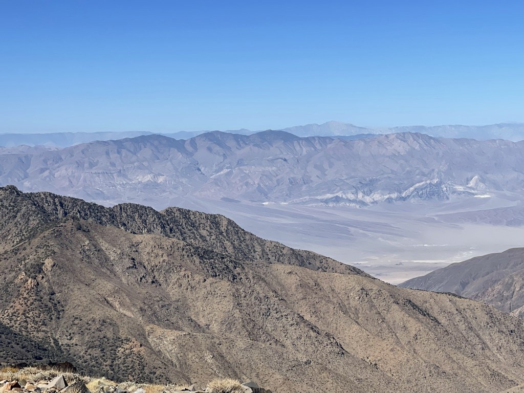 It was the clearest day I had in quite some time. There was no haze or smoke in any direction, including the Sierra. I could see all the way from Mount Baldy in the south to White Mountain Peak in the north. This is also one of the few vantage points where one can see both the lowest and highest points in the contiguous United States. To the east was Badwater Basin, the lowest point in Death Valley at -282 feet below sea level. Mount Charleston in southern Nevada could be seen in the distance (back left).