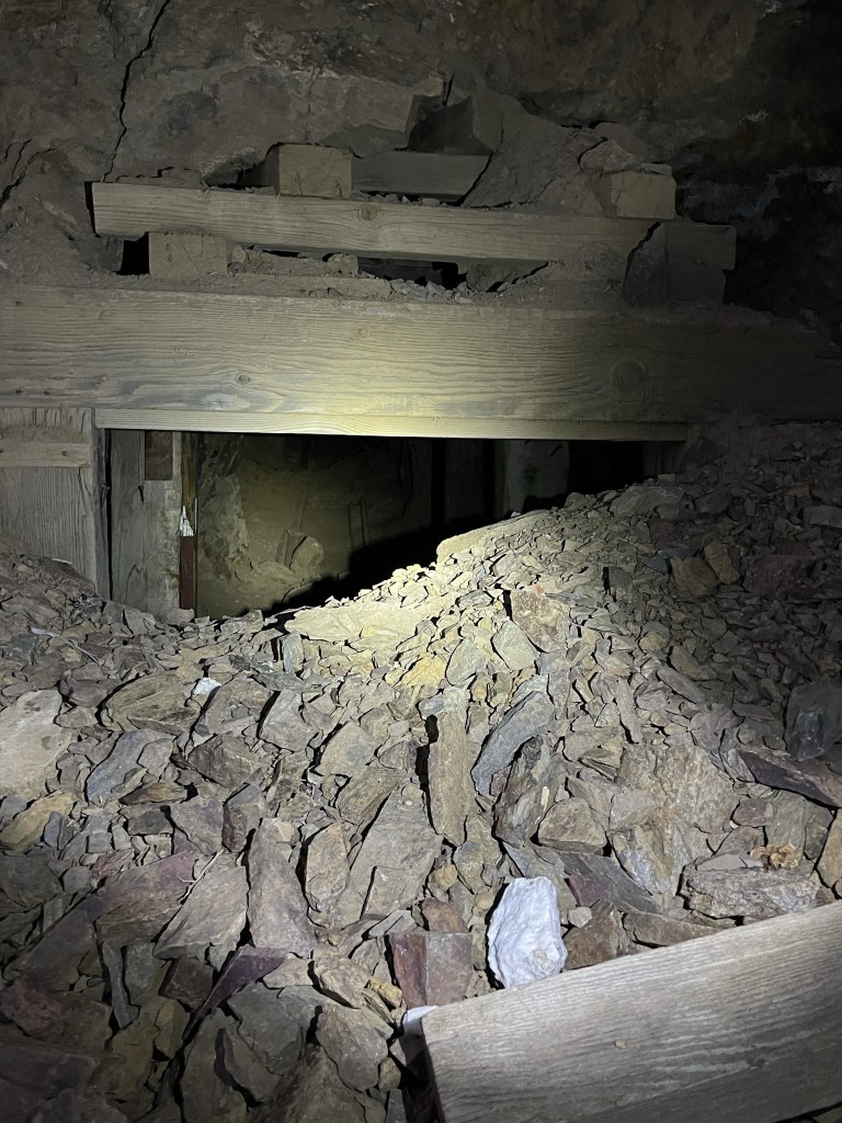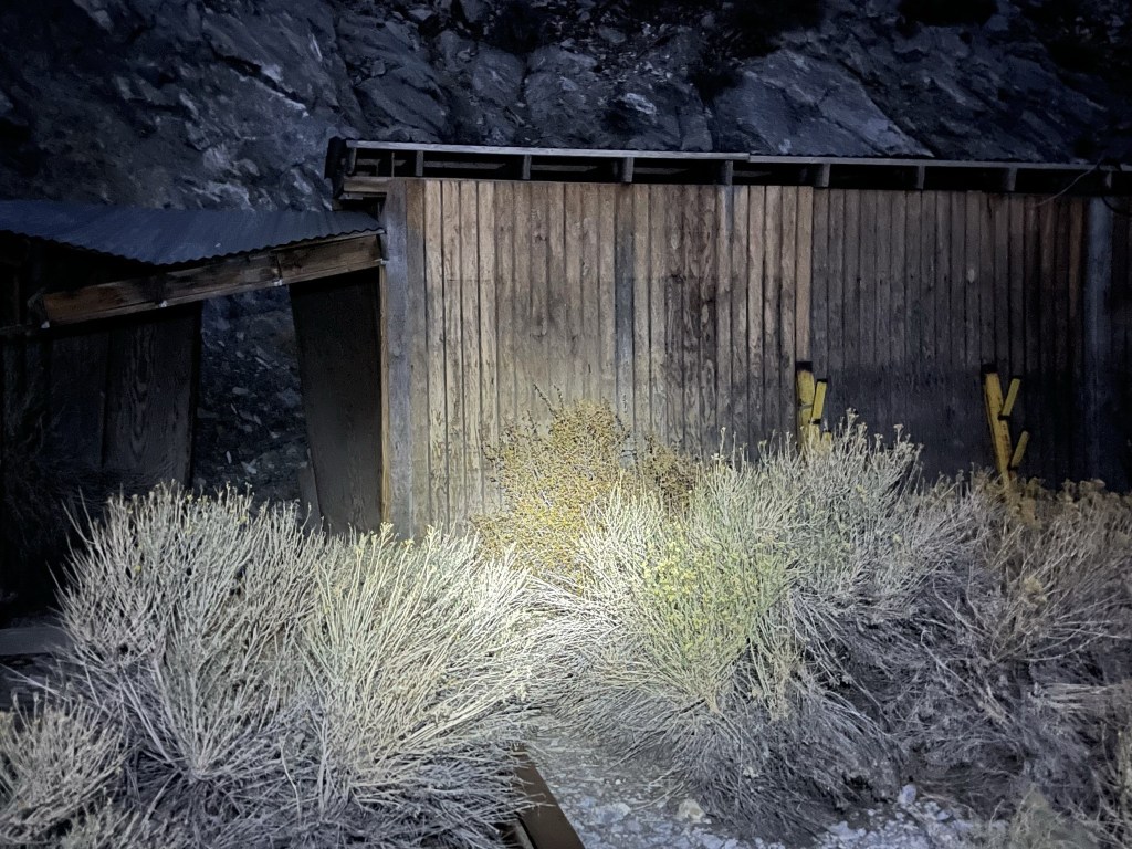 I noticed a deep mine shaft that I had missed in the dark on my way up. This was near the cabin I had passed at 0.9 mile earlier in the day. I was too chicken to take a step inside.