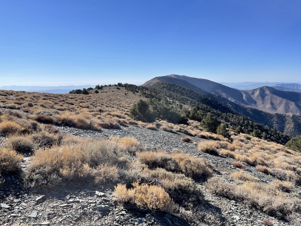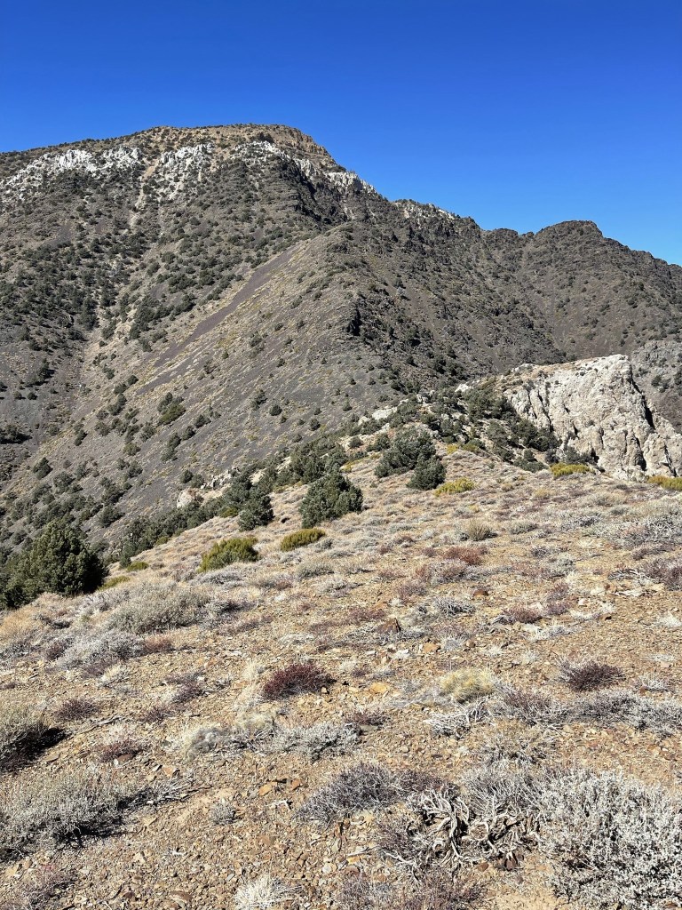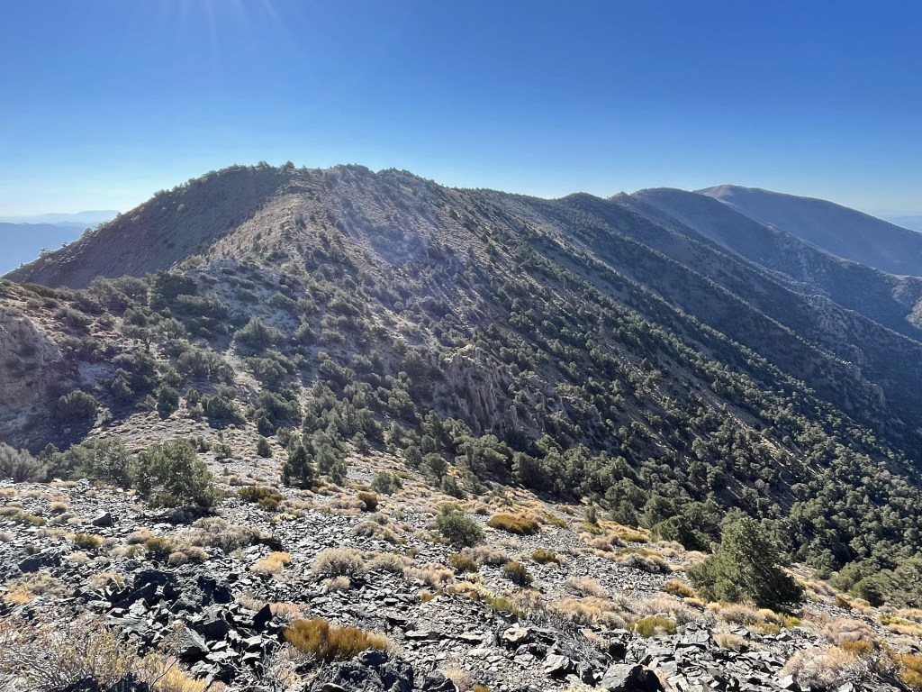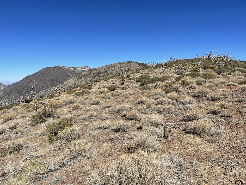To the south I could see my next objective, Porter Peak. I would be descending off the summit to the left and then following the ridge pictured below.