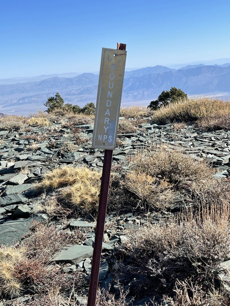 I came across a number of NPS boundary markers. I think the boundary of Death Valley used to follow the crest of the Panamints. In 1994 Death Valley was upgraded from national monument to national park and the boundaries were also expanded. The current boundary is further down the western slope of the mountain range.