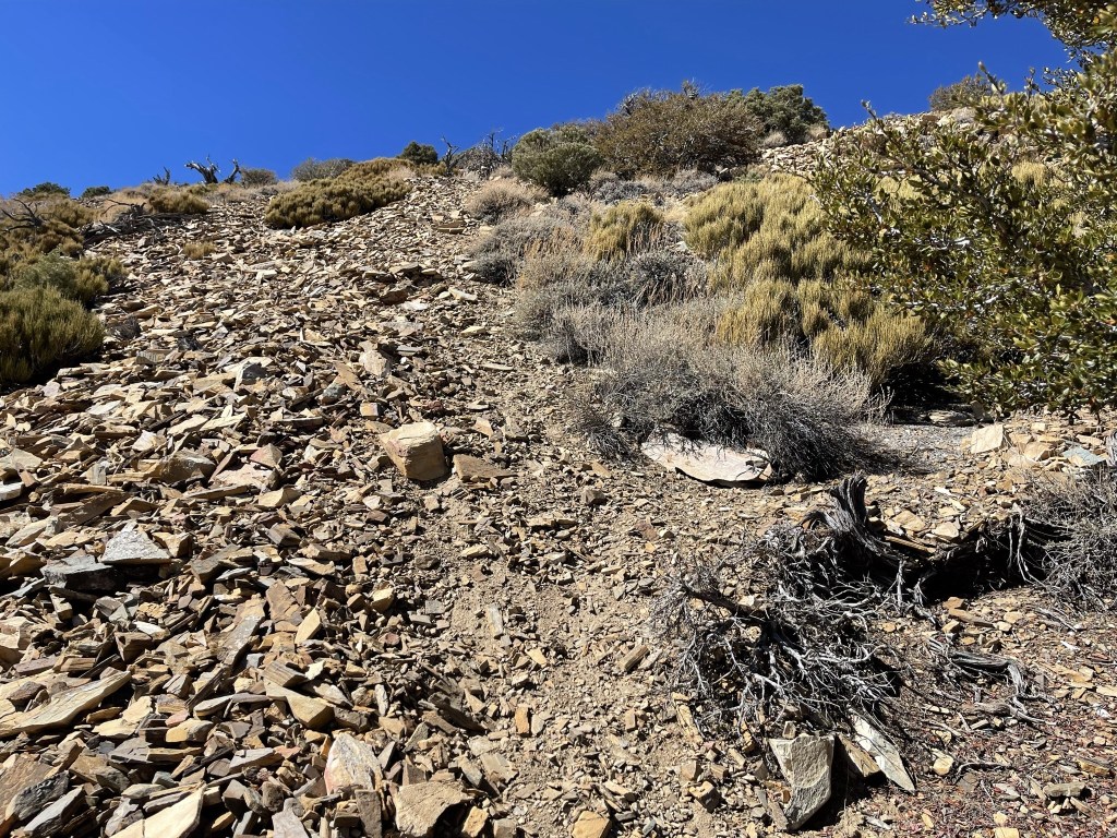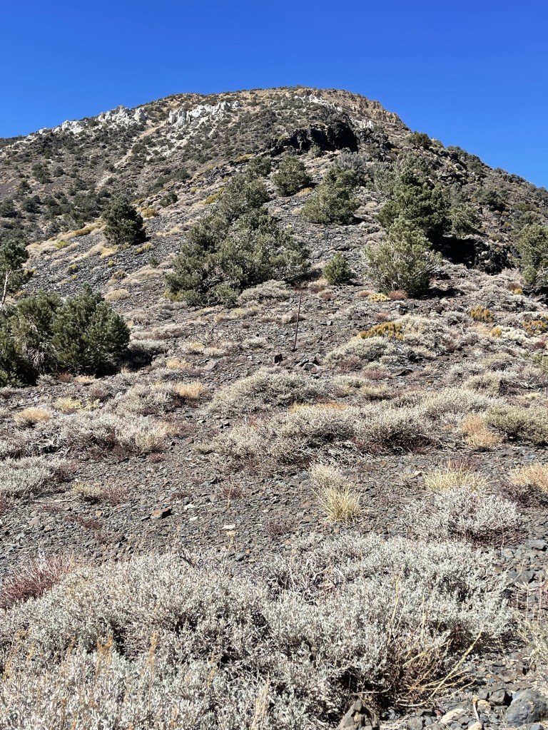 The road continued a short way past the mine. I then turned south and began hiking up the ridge.