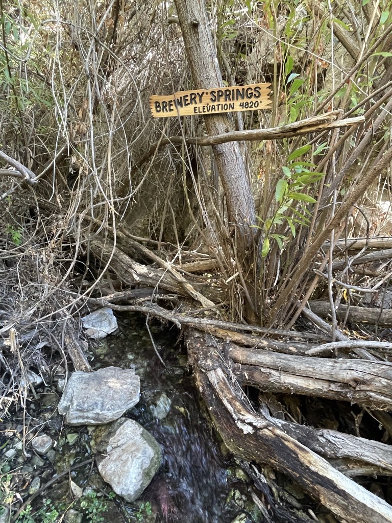 I was out of water, so I filled up at Brewery Spring, which I reached at 17.2 miles. I hadn’t noticed this sign above the spring on my way up the day before.
