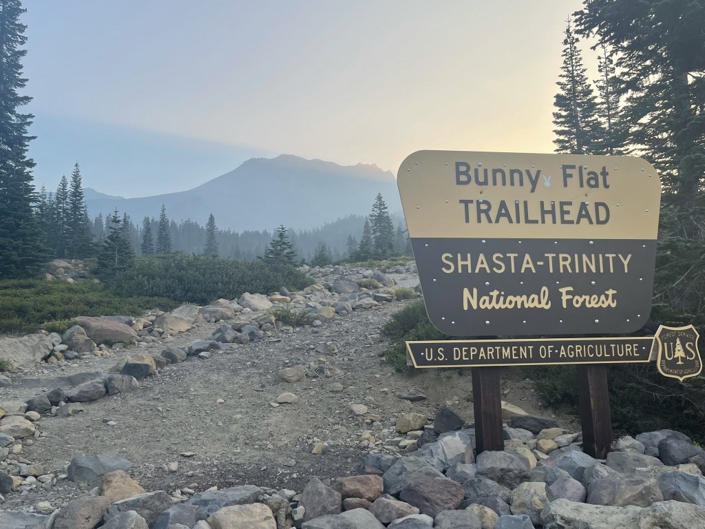 Shastina is a subpeak on the western side of the massive Cascade volcano, Mount Shasta. At 12330 feet, Shastina would be the 3rd highest peak in the Cascades if it were counted as a separate peak (after Mount Rainier and Mount Shasta itself). It does have 450 feet of prominence, but the peak is rarely climbed except as a side trip for those climbing Mount Shasta. I intended to climb Mount Shasta the following day via the Clear Creek Route, so I thought Shastina via the Cascade Gulch route would make a good warmup. The trailhead for this route is Bunny Flat, which is the same trailhead as the popular winter route for Shasta, Avalanche Gulch. I had camped the night before on Sand Flat Road, which is near Bunny Flat and contains many good pullouts to park for the night. There are 2 different permits needed for climbing on Mount Shasta. The first is a free wilderness permit. You simply fill out your information in a little book and take the carbon copy with you. The second is a $25 summit pass, which is required for climbing about 10000 feet on Mount Shasta. Thankfully, the pass is good for 3 days so I wouldn’t need a separate one for the next day. Both permits are self-issued at the trailhead. The third thing you need is a bag for solid waste. All they provide is a doggie bag, so I’d recommend bringing something a little sturdier if you want to. I began my climb of Shastina at 6:47am from 6871 feet above sea level. It was 51 degrees.