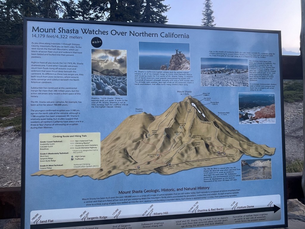 I drove into town and got something to eat. I then drove around to the southeast side of the mountain to the Clear Creek Trailhead, where I planned to start the next day for my climb of Shasta. It was a long dirt road drive to reach the trailhead. I relaxed for a bit when I finally got there and then had a good night of sleep.