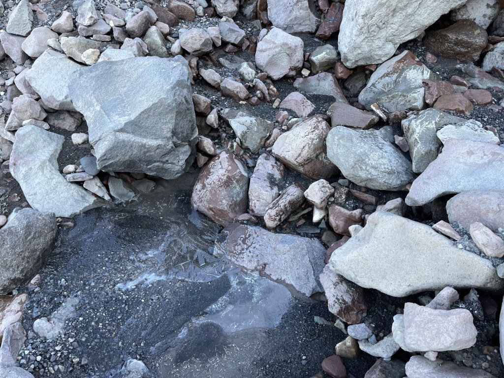 I reached the gulch at 6.4 miles. The water was now thawed so it was a bull blown stream. This made it easier to navigate since I didn’t have to avoid the ice.