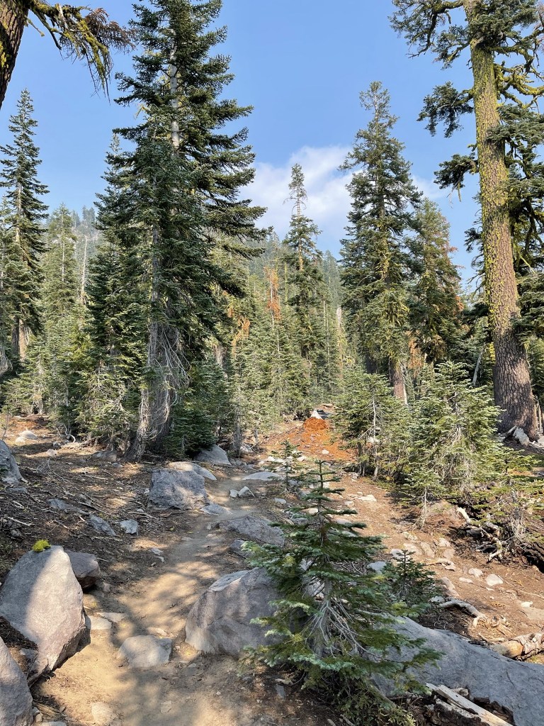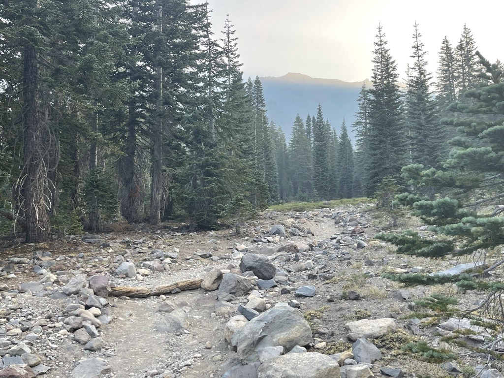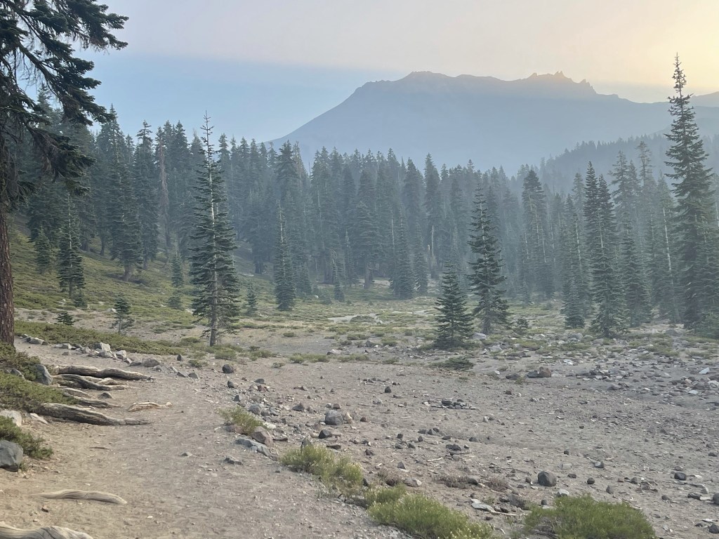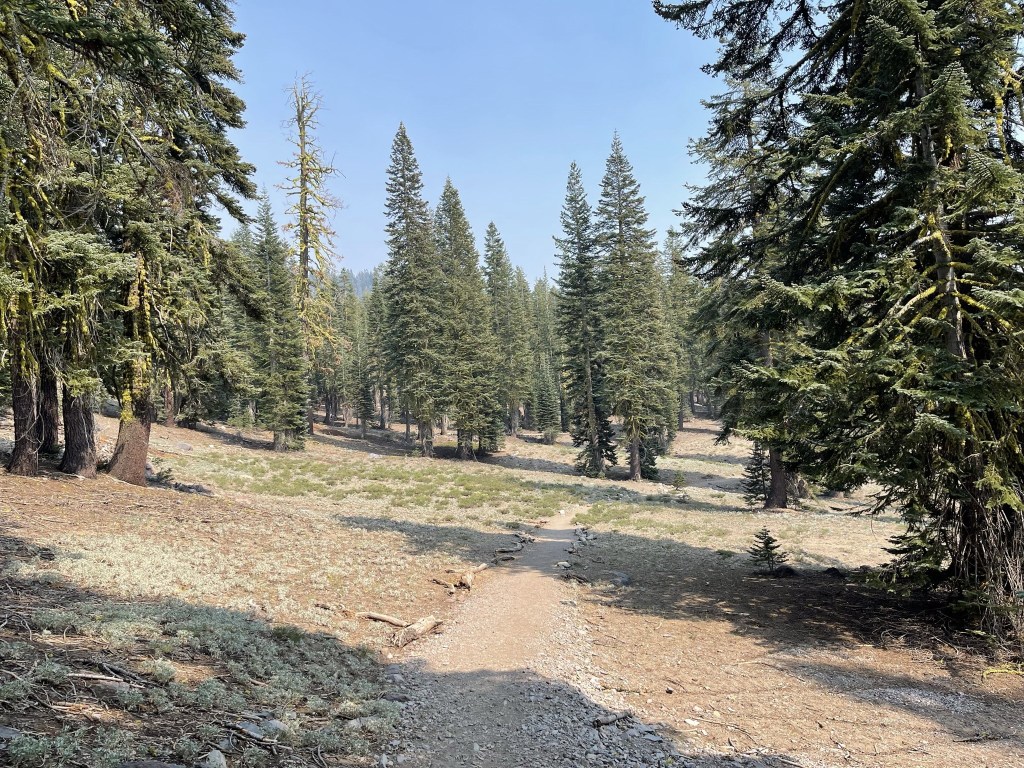 The smoke seemed to clear a little bit as a I descended. I passed a family of 4 day hiking to Hidden Valley at 8.7 miles. At 9.4 miles I reached Horse Camp again. I chatted with a lady there who said she was a Mount Shasta local. She was impressed when I told her I had climbed Shastina, and she also informed me that the entire national forest (as well as other national forests in Northern California) would be closing at the end of the weekend due to the extreme wildfire danger. I felt lucky the closures wouldn’t affect my trip at all.