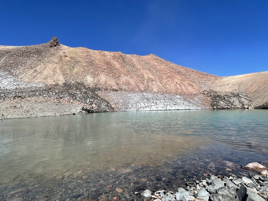 Before continuing to Shastina I made a short descent north to 2 small lakes I saw from the saddle. The topo map only shows 1 lake and labels it Sisson Lake. I reached the first lake at 5.2 miles. The surface of the lake was half frozen.