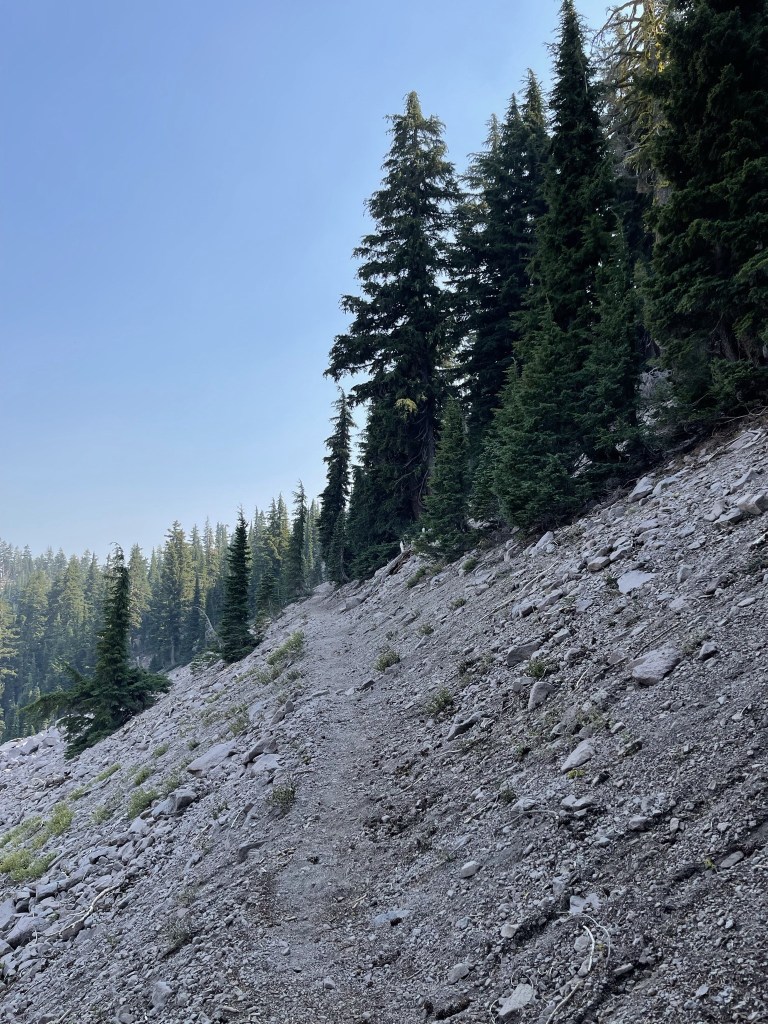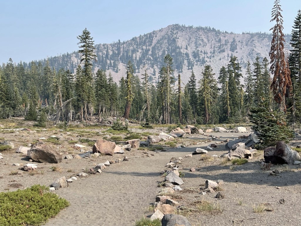 I hiked north on a nice sandy trail away from the parking lot. Mount Shasta loomed large in the distance. Shastina was not yet visible.