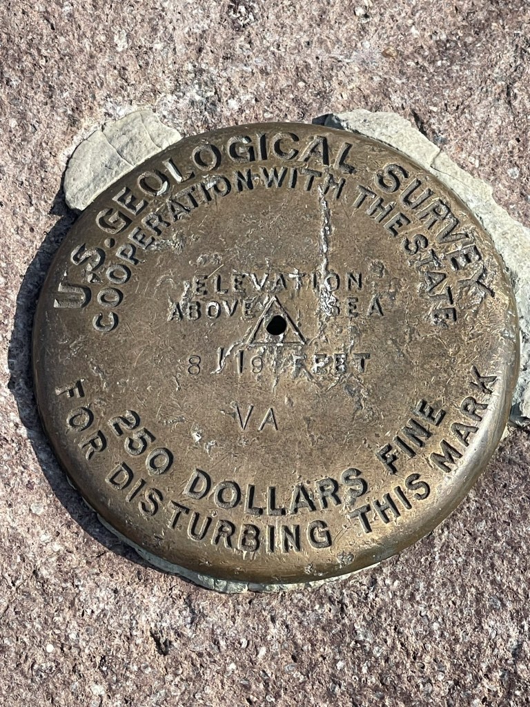 I reached the summit at 4:49pm at 1.7 miles! I located a benchmark.