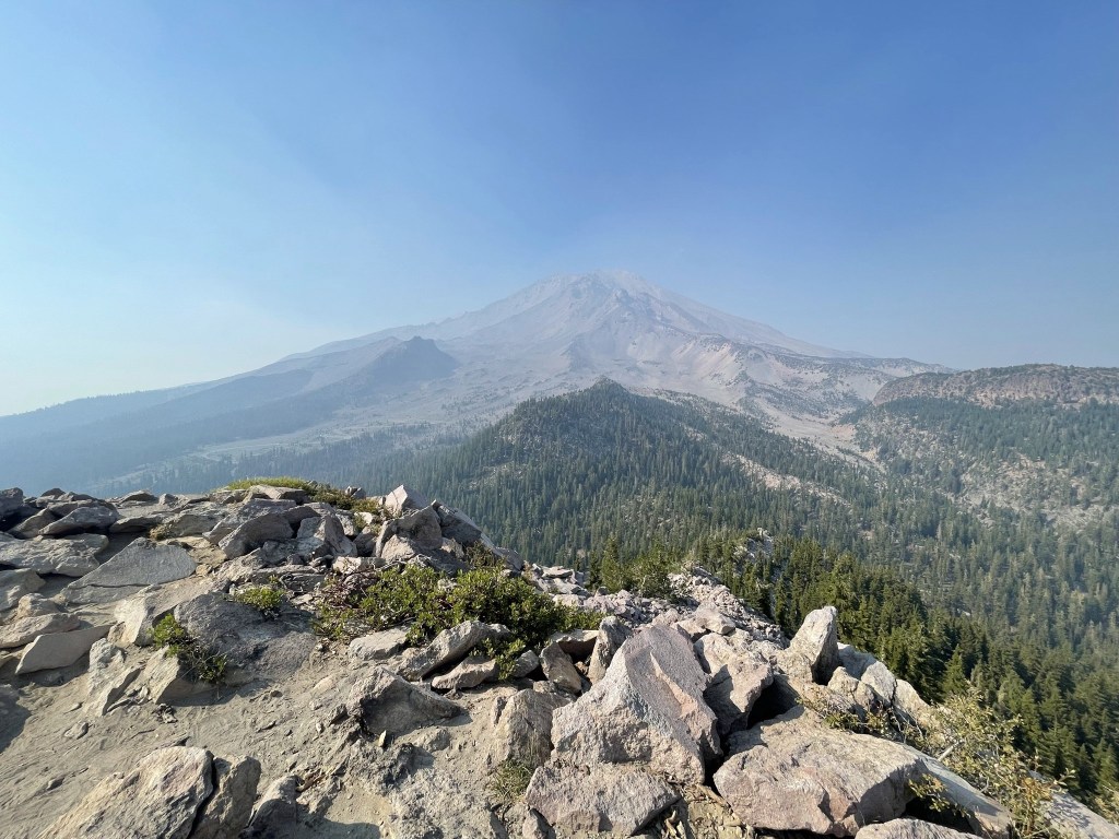 It was too smoky to be able to see the surrounding mountain ranges, but I had a great view of Shasta 1800 feet above me to the east.