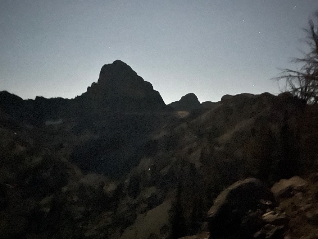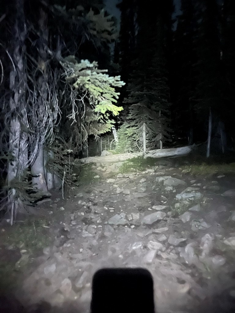 She Devil (9400 ft) and He Devil (9400 ft) are 2 separate peaks located in western Idaho near the Snake River and the Oregon border. Neither has been officially surveyed, but both peaks are within the same 9400 ft contour on topographic maps. Whichever one is higher has 5200 feet of prominence and is one of only 57 ultra-prominent peaks in the contiguous United States. The lower one has a mere 600 feet of prominence from the saddle between the two. Peakbagger lists the same elevation for each peak, but has She Devil on all of the prominence and elevation based lists. Anyway, I planned to climb both of them via a loop hike through the Seven Devils Wilderness. I had driven to Seven Devils Campground the night before and slept in the rental car. The campground is about 17 miles from US Highway 95 on good dirt roads. Google Maps will get you there no problem. I began this hike at 4:48am from 7533 feet above sea level. The trailhead for Sheep Lake is located on the southwest corner of the campground loop road. It was a bit tricky to find in the dark.