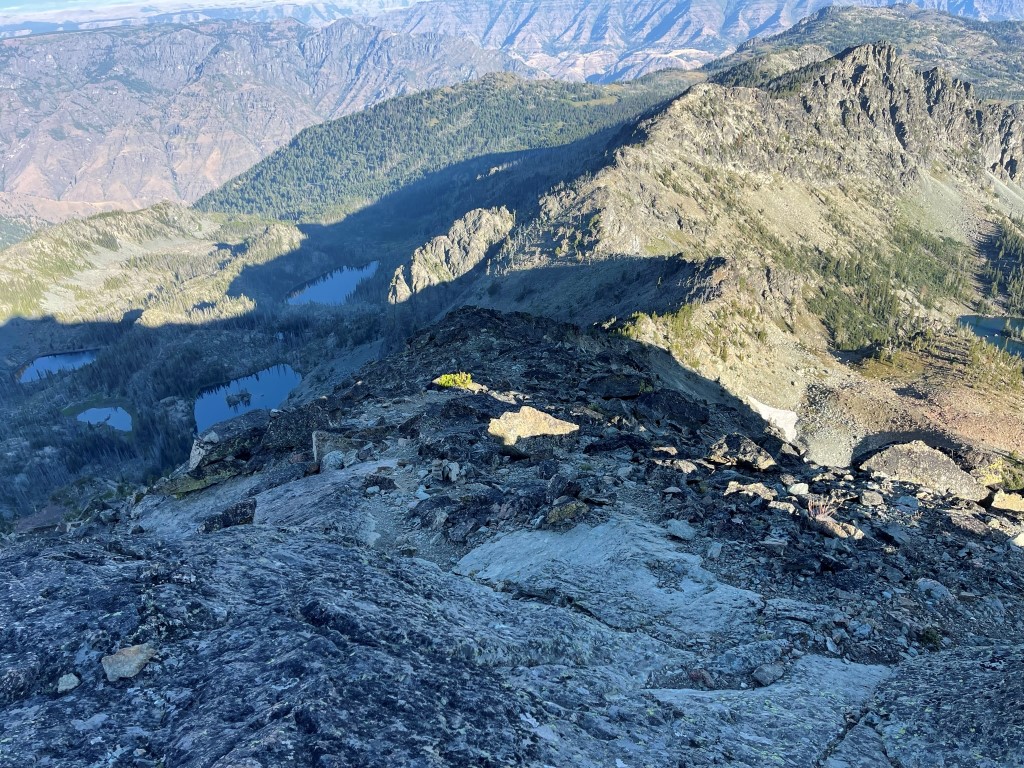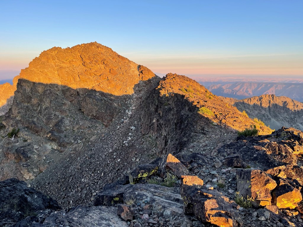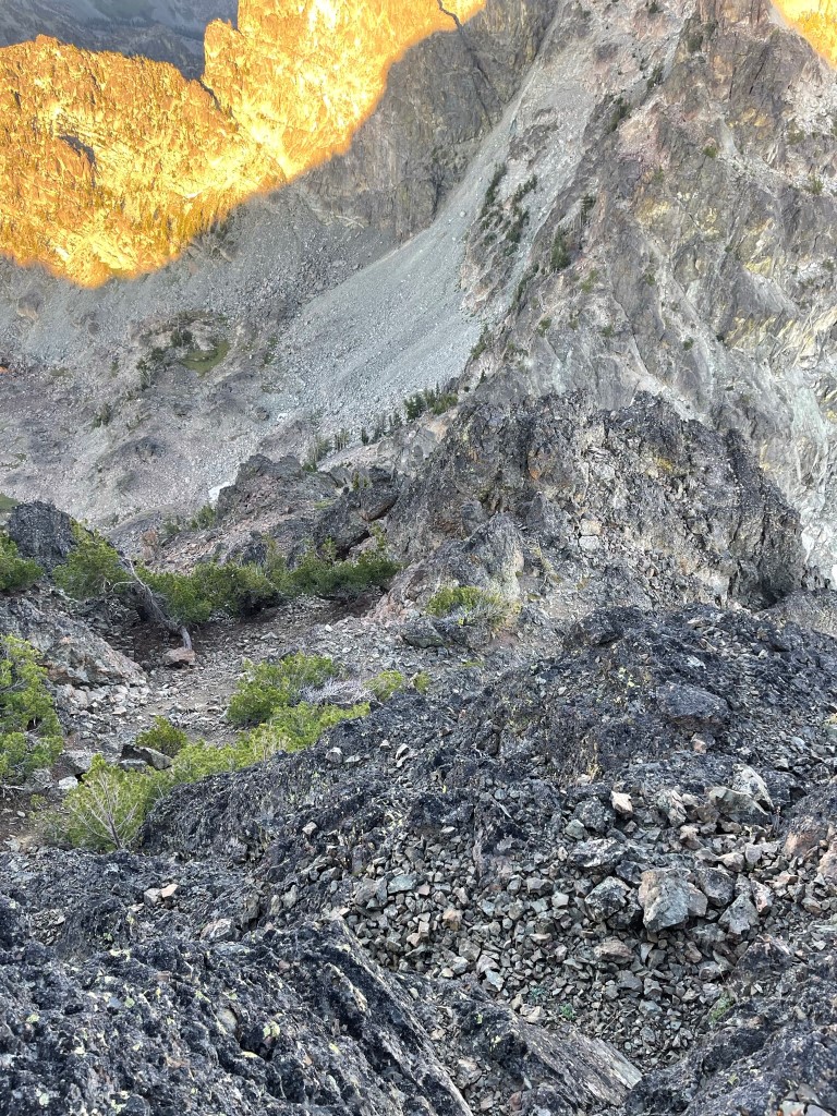 I had made good time on the traverse, so I was no longer concerned about running out of time to get to Boise for my flight. I then descended the northwest ridge of He Devil, which is the standard ascent route. This is the only reason I was comfortable attempting the traverse from She Devil to He Devil (since I knew I wouldn’t have to downclimb the class 4 sections).