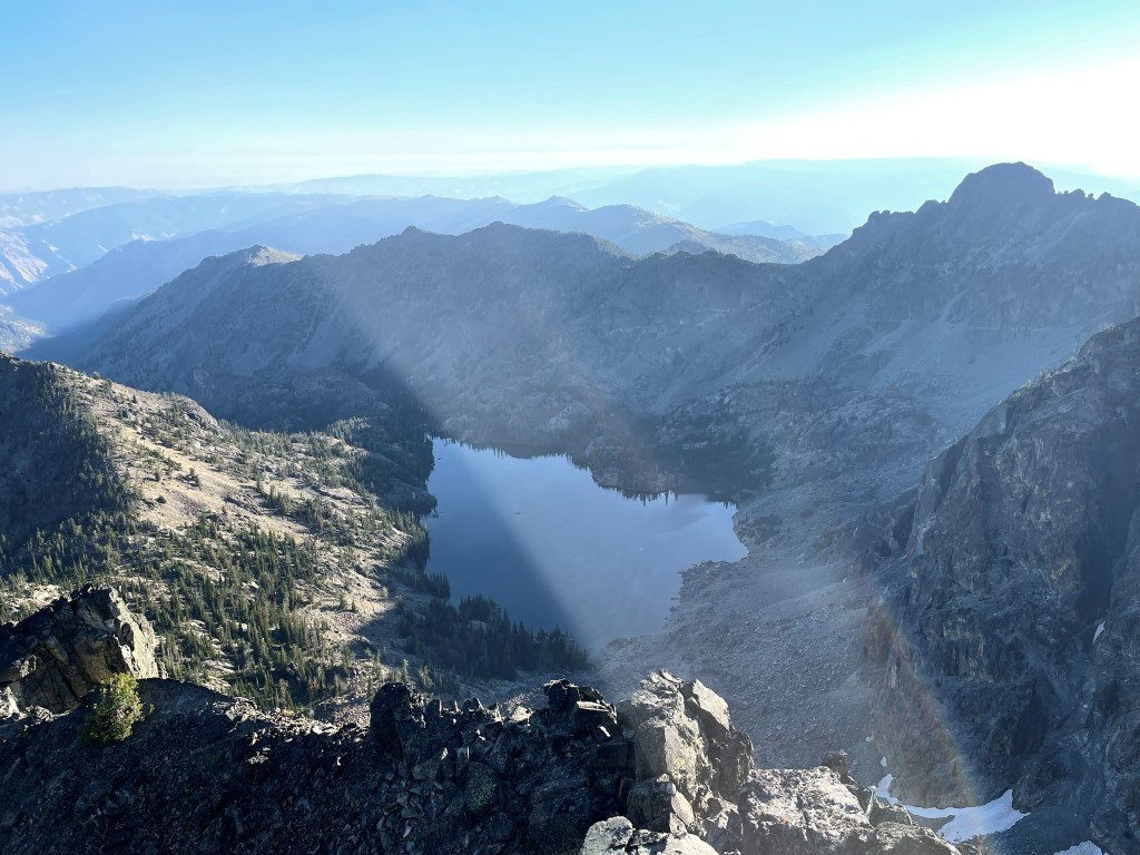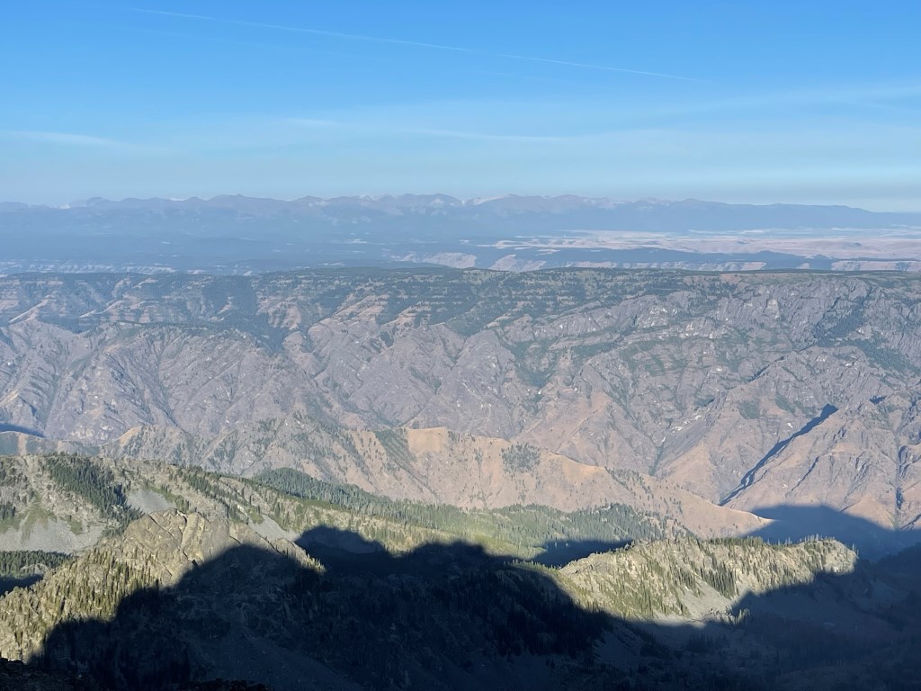 To the west I could see Sacajawea Peak in Oregon. This is a different Sacajawea Peak than the one I had just climbed the day before near Mount Borah. Idaho and Oregon are divided by the Snake River in this region. The Snake River sits at the bottom of Hells Canyon which you can see part of in the picture below. He Devil rises over 8000 feet above the river which makes Hells Canyon the deepest canyon in North America (according to Summitpost).