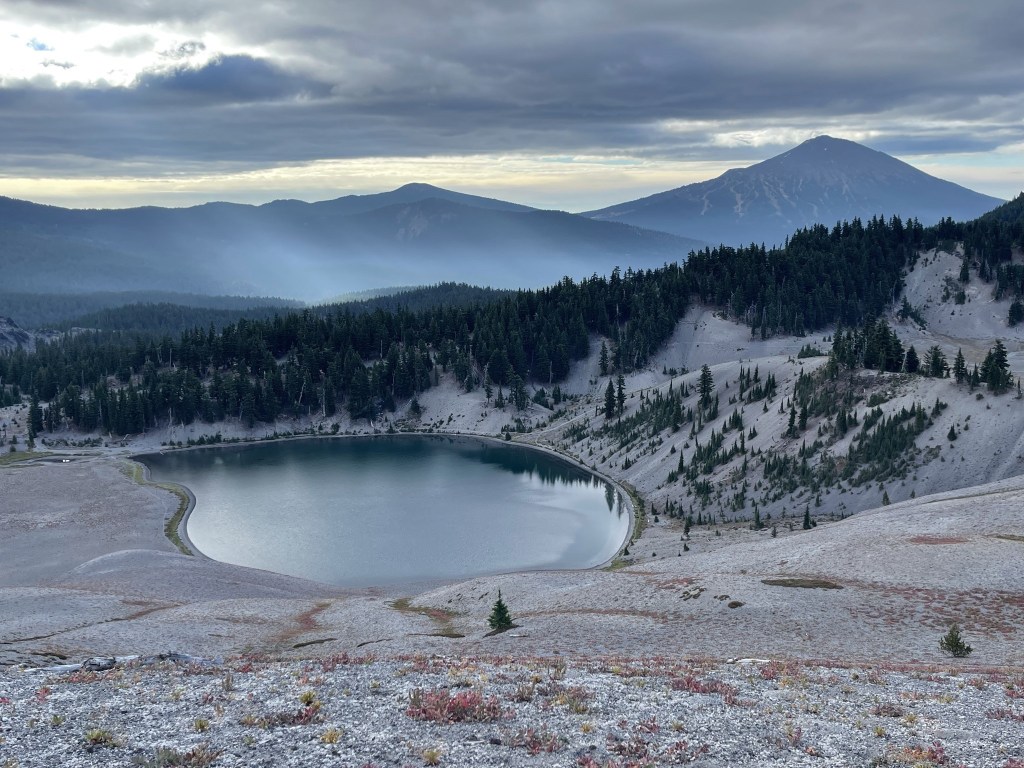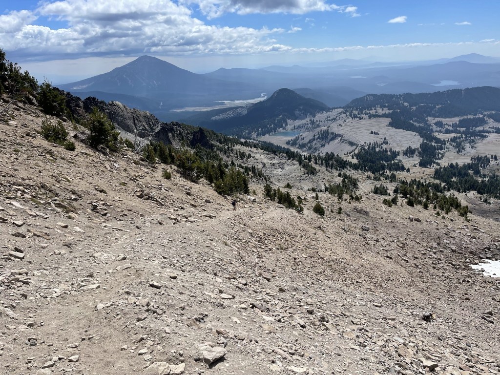 I could see Moraine Lake below to my right. Mount Bachelor is on the right.