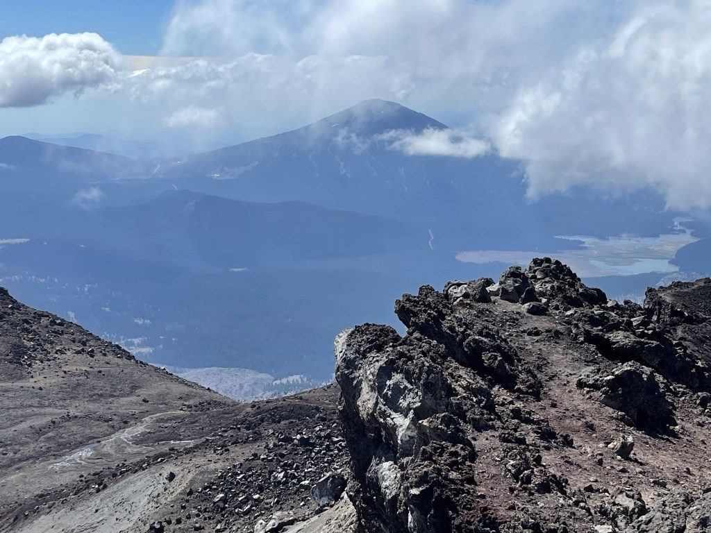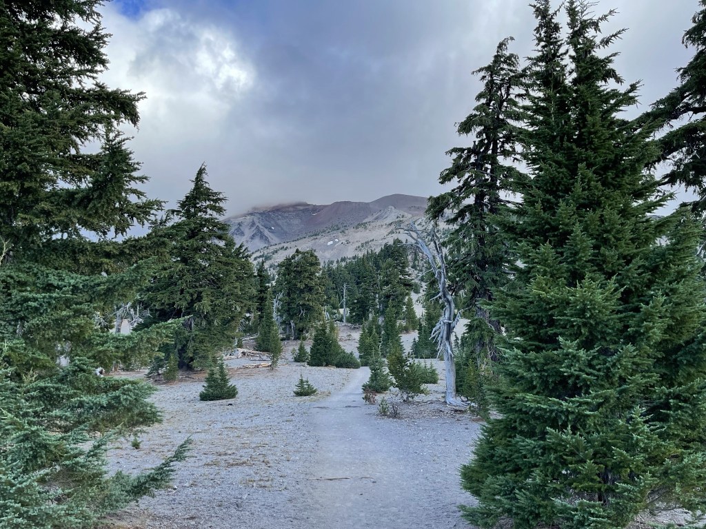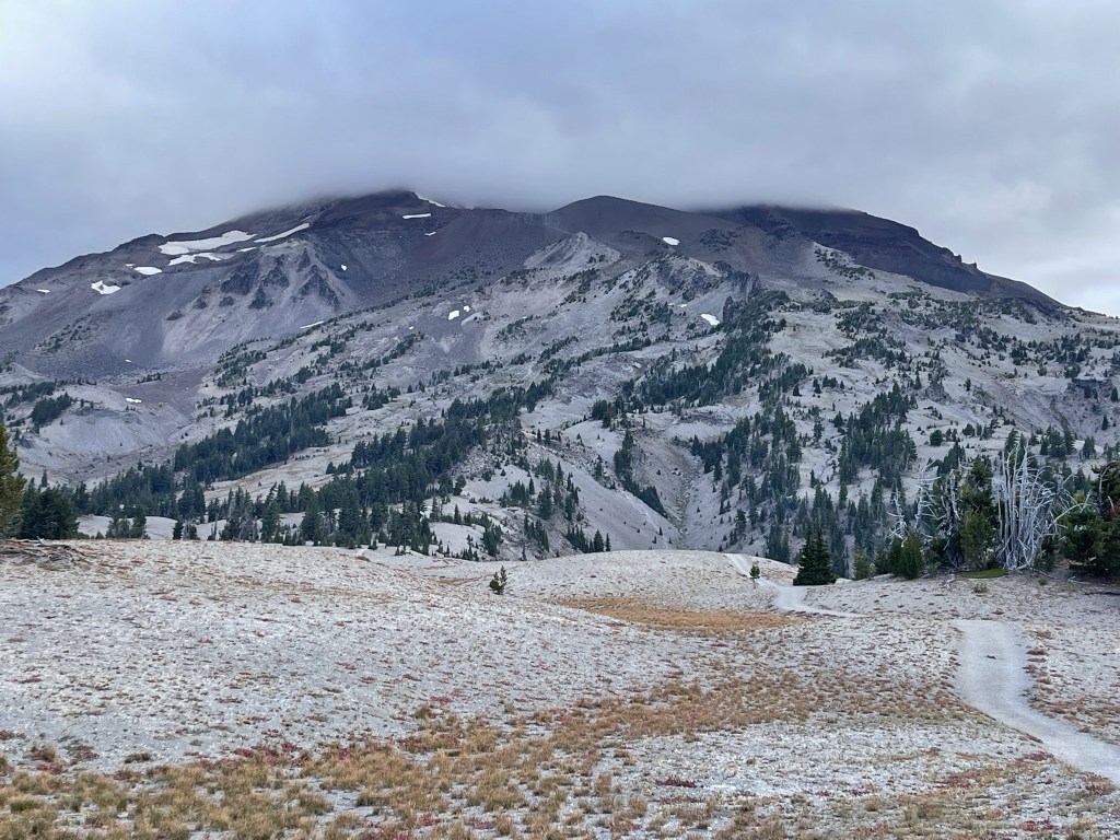 South Sister soon came into view, but the upper part of the mountain was hidden behind cloud cover.