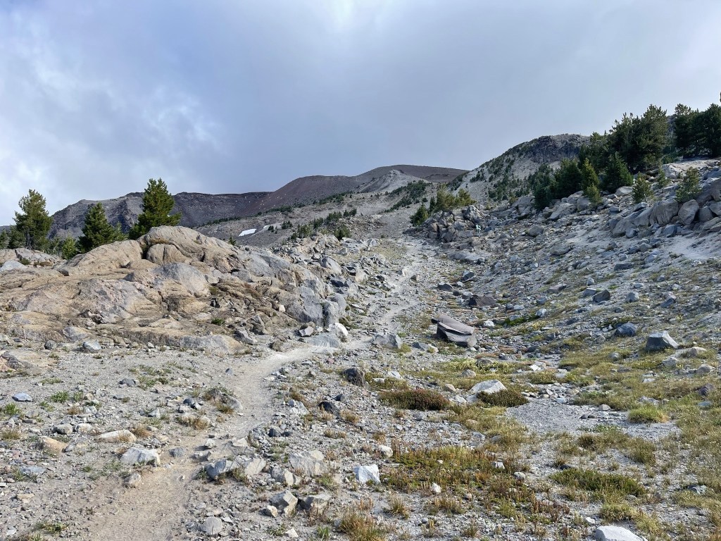 I didn’t stay at the tarn as long as would have liked because there were 3-4 chipmunks who would not leave me alone. They obviously were very used to getting scraps of food from passing hikers. I continued hiking down.