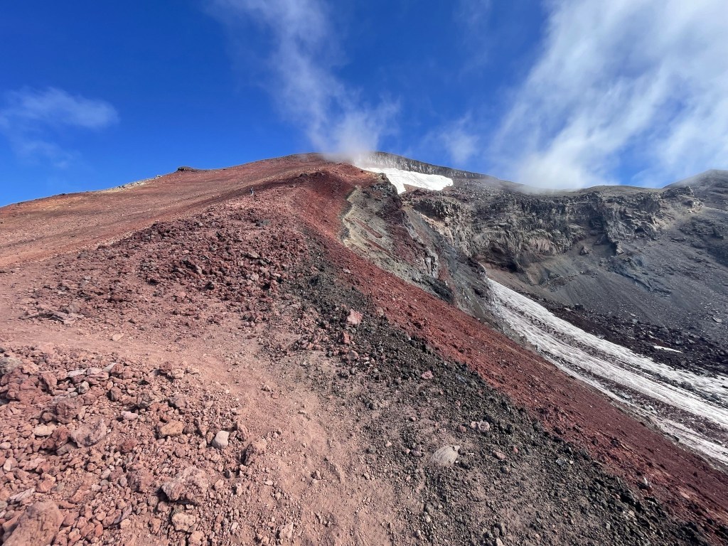 I reached the crater rim at 5.6 miles at 10220 feet. The summit is on the far side of the crater.