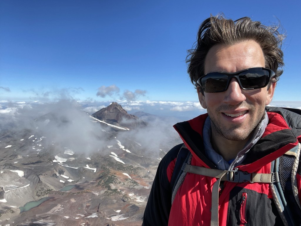It was a short but steep climb. I reached the top of Lewis Glacier Peak at 12:19pm at 7.6 miles. As expected, I had a great view of Lewis Tarn, Lewis Glacier, and South Sister itself.