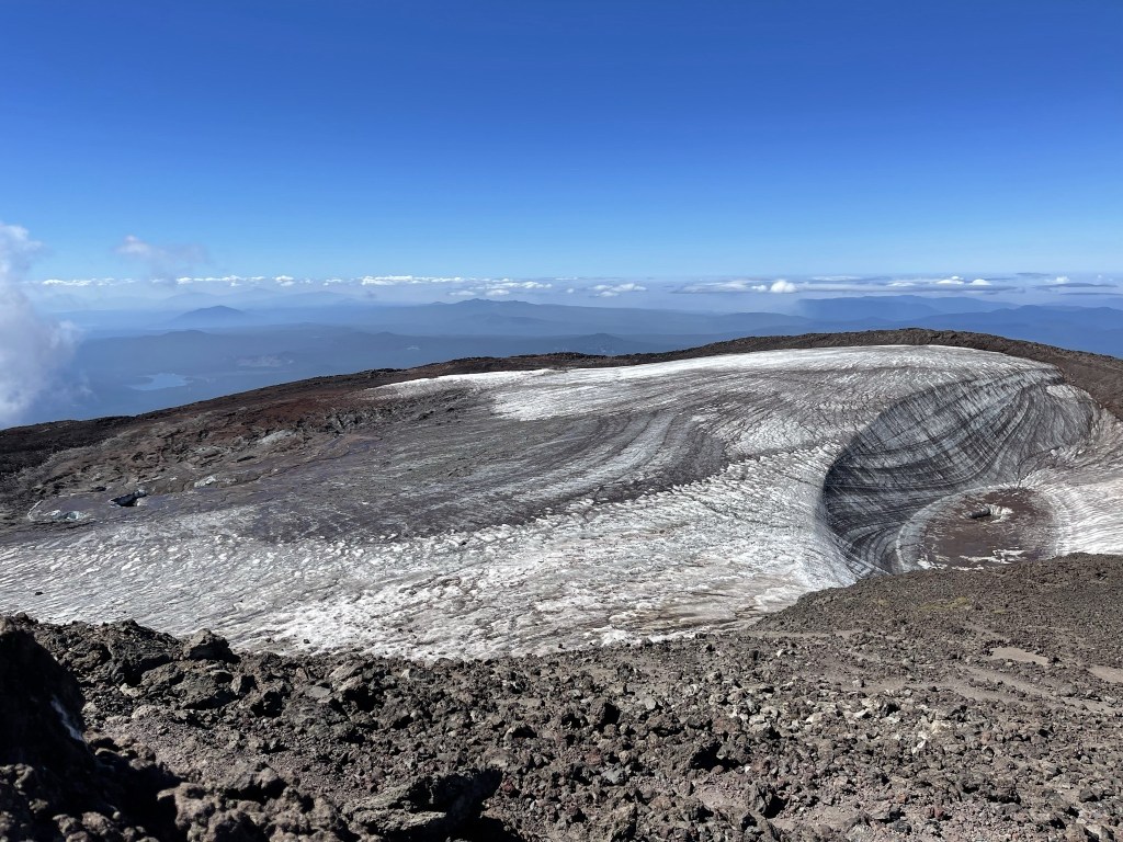 It was very cold and windy on the summit, but not quite as bad as the previous day on Bachelor. I descended into the crater and took some pictures while standing on the ice.
