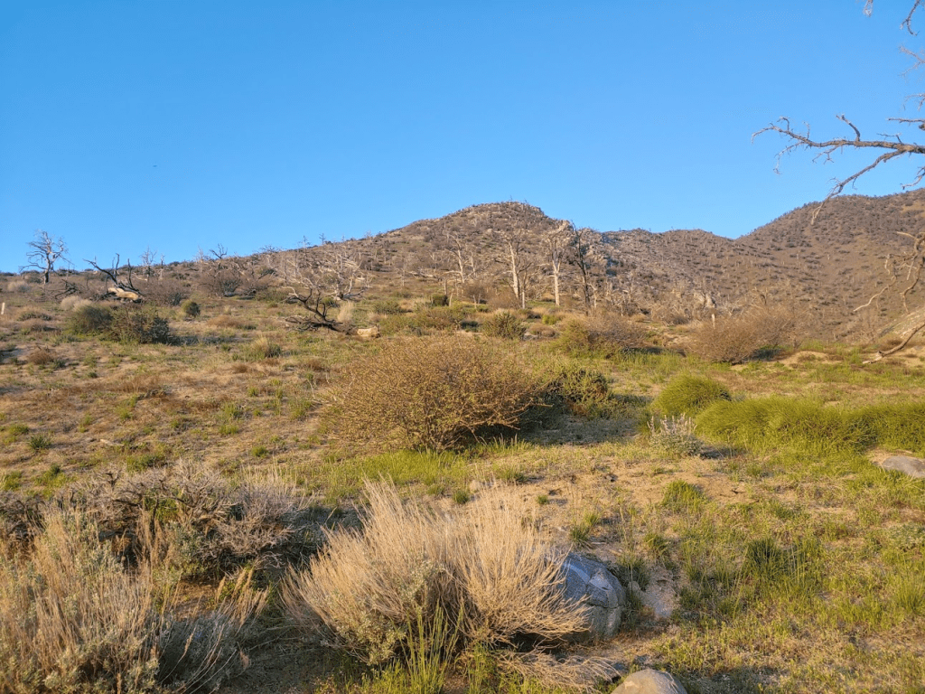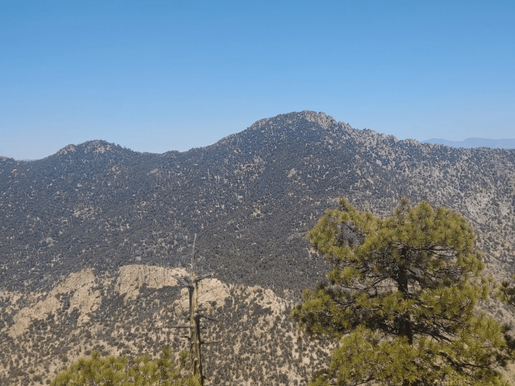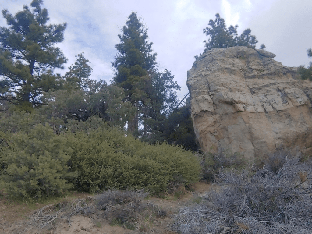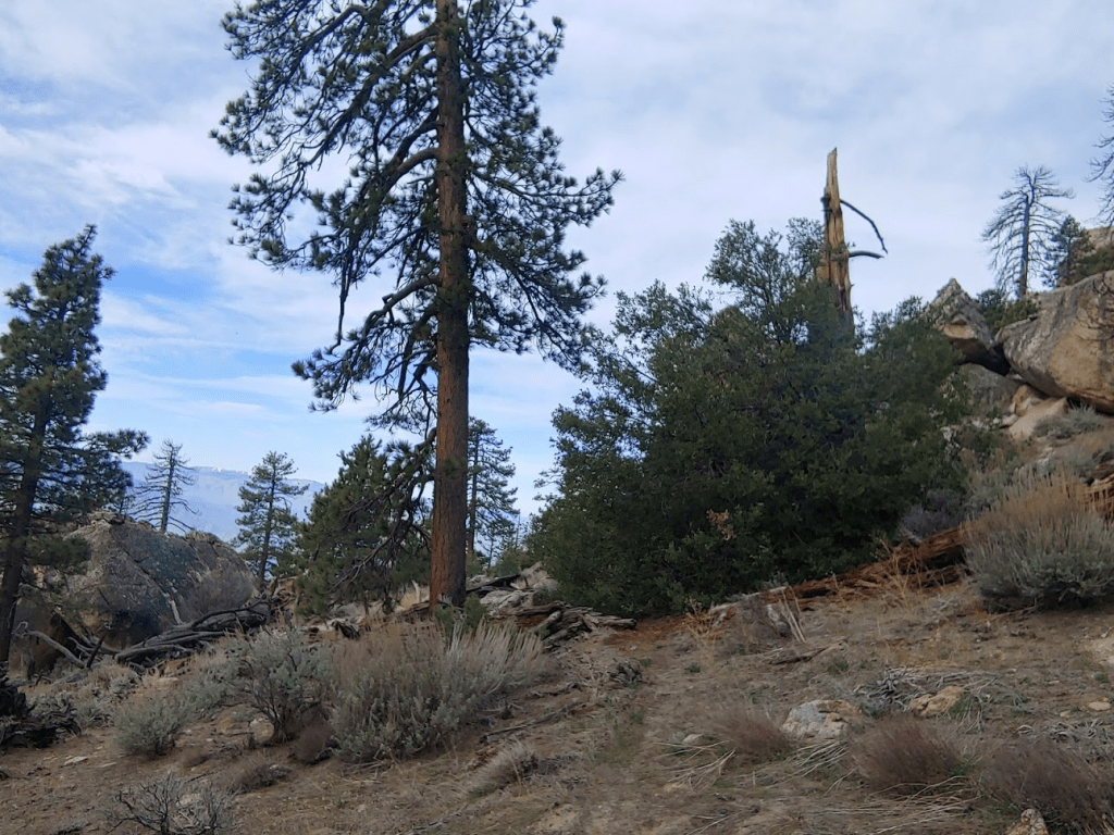 Scodie Mountain (7294 feet) is another peak on the HPS list. The other peaks I had climbed on this trip are on BLM land, but Scodie actually lies in the Kiavah Wilderness within Sequoia National Forest (I think). Once I was parked, I walked up through the campground to a short trail used to access the PCT. The campground wasn’t much – I only counted 2 or 3 sites, but the sites themselves seemed nice and the location was scenic. I started hiking at 9:48am.