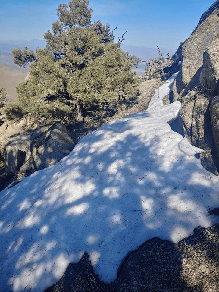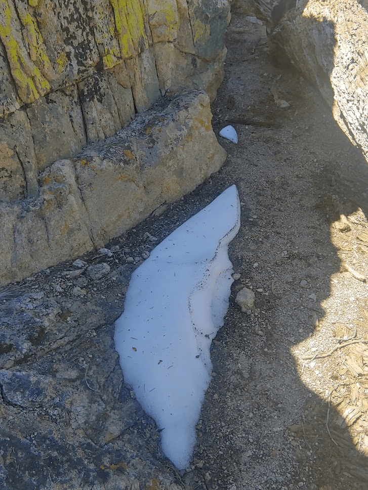 I briefly explored the north side of the summit area and found some larger snowbanks in the shady areas.