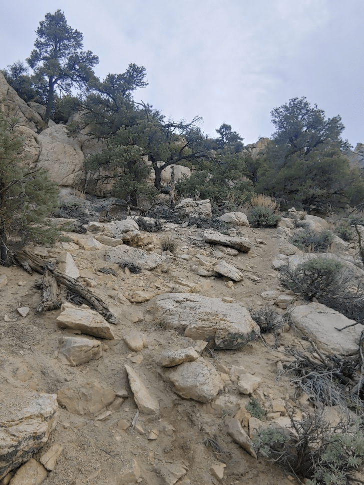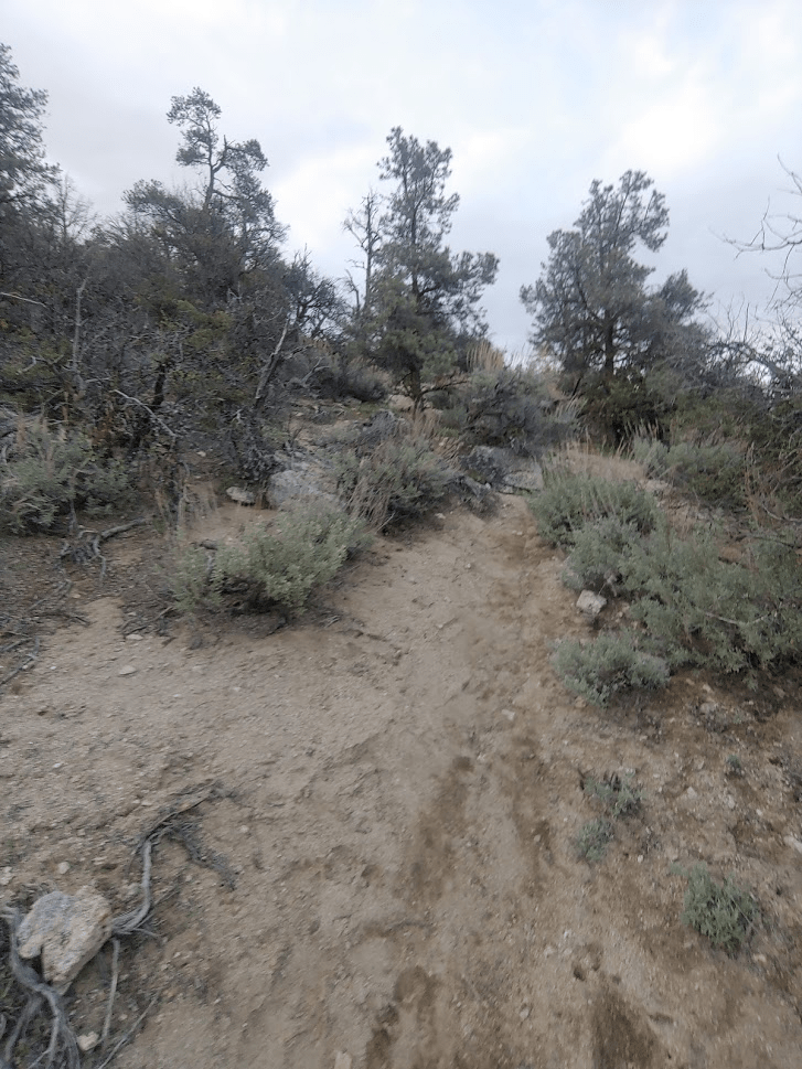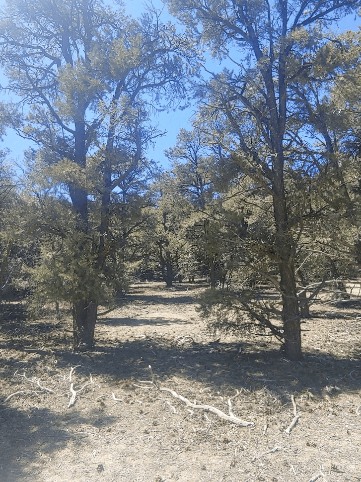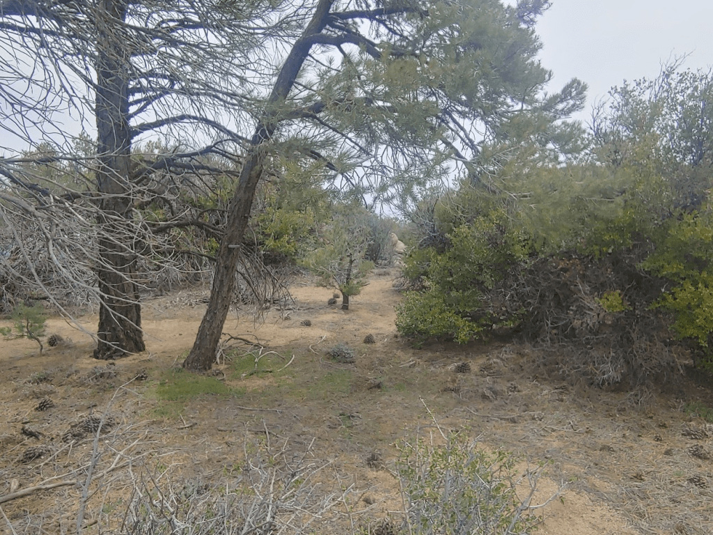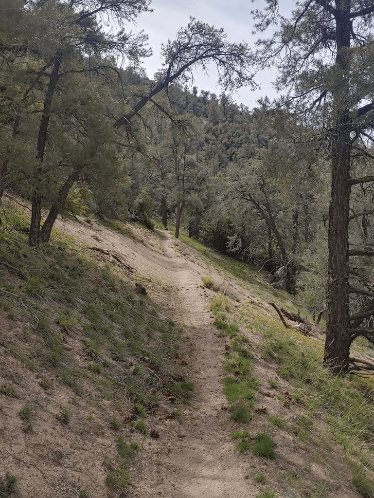 The trail wound its way gently upward through a forest of pinyon pines.