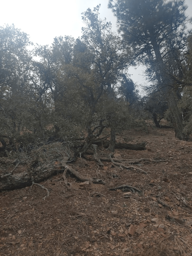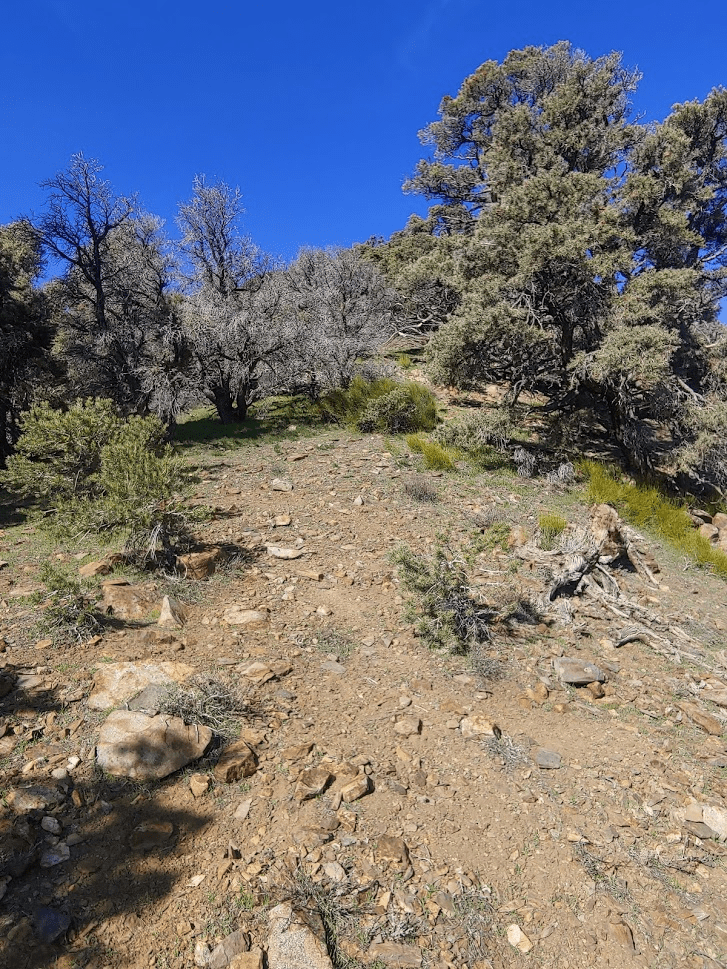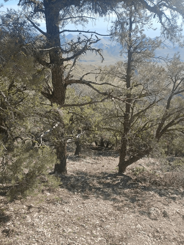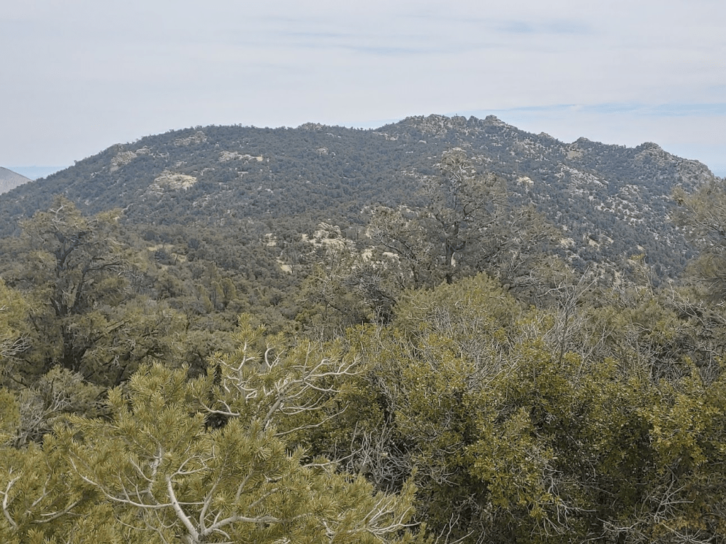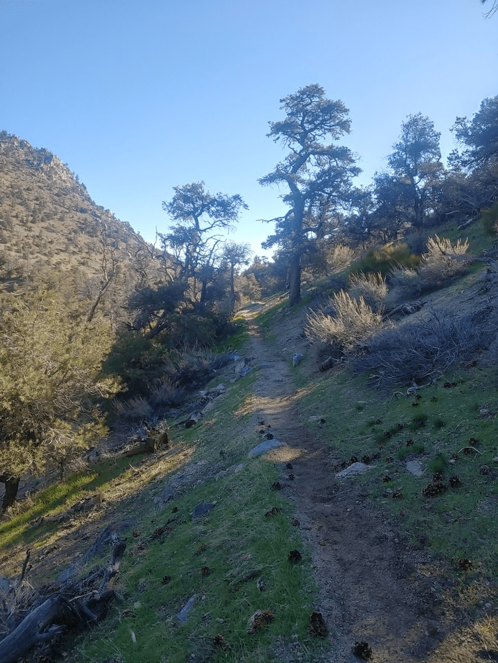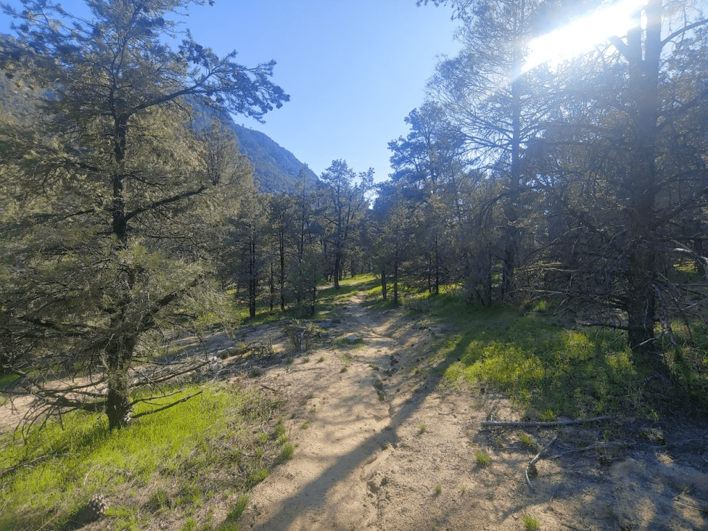 The trail wound its way gently upward through a forest of pinyon pines.