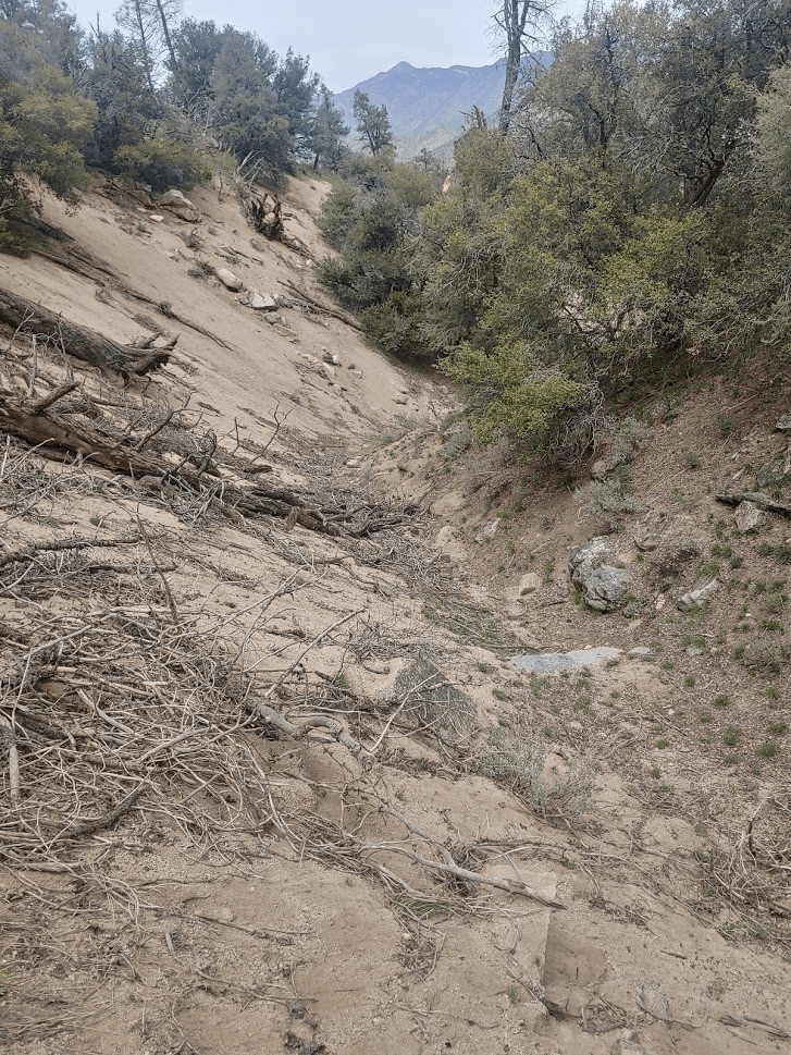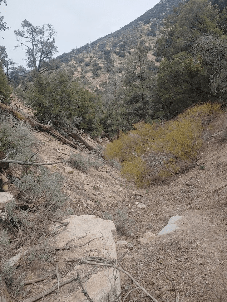 After maybe a mile, I found the gully I was looking for that would lead me down to the trailhead.