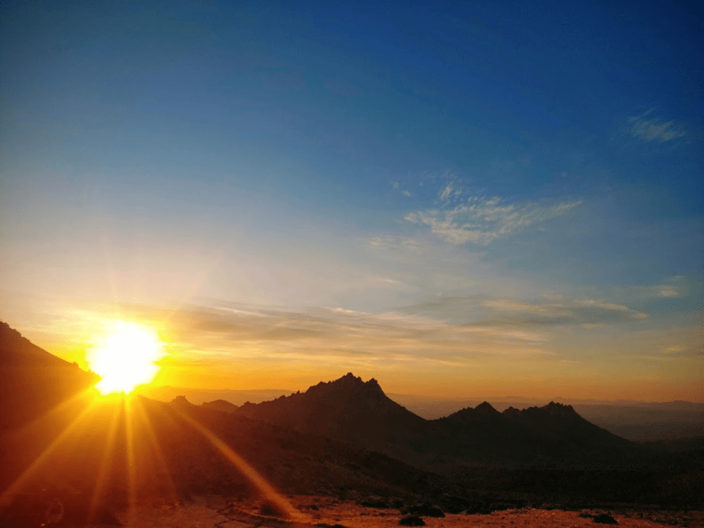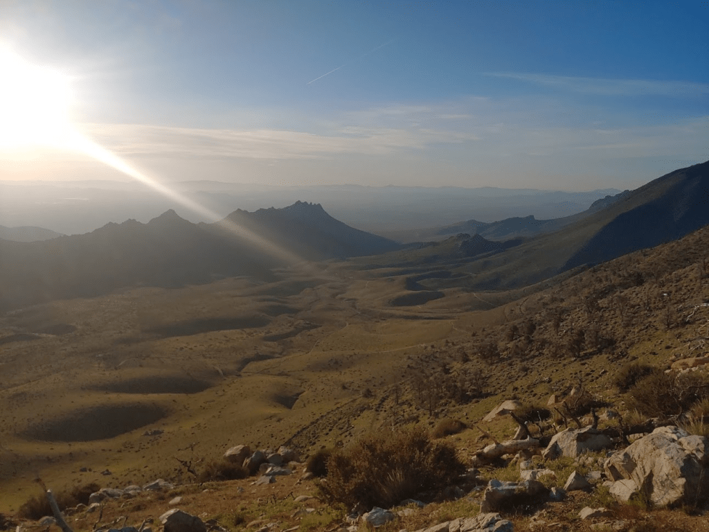 I had a pretty ambitious hike planned for Saturday. My main goal was to climb 8453 foot Owens Peak, which is on both the Sierra Peaks List and the Hundred Peaks List (It’s one of the northern-most peaks on the LA-centric HPS list, and one of the southern-most peaks on the Sierra Peaks list). There are 2 other HPS peaks in the area that I intended to climb, Mount Jenkins (7921 feet) and Morris Peak (7215 feet). I intended to climb a ridge south up to the PCT, climb Morris Peak, go north on the PCT, climb Mount Jenkins, go further north on the PCT, climb the south ridge of Owens, and then descend the Owens Peak trail back to the trailhead. I started hiking at 6:17am. The sunrise over the Owens Valley was spectacular.
