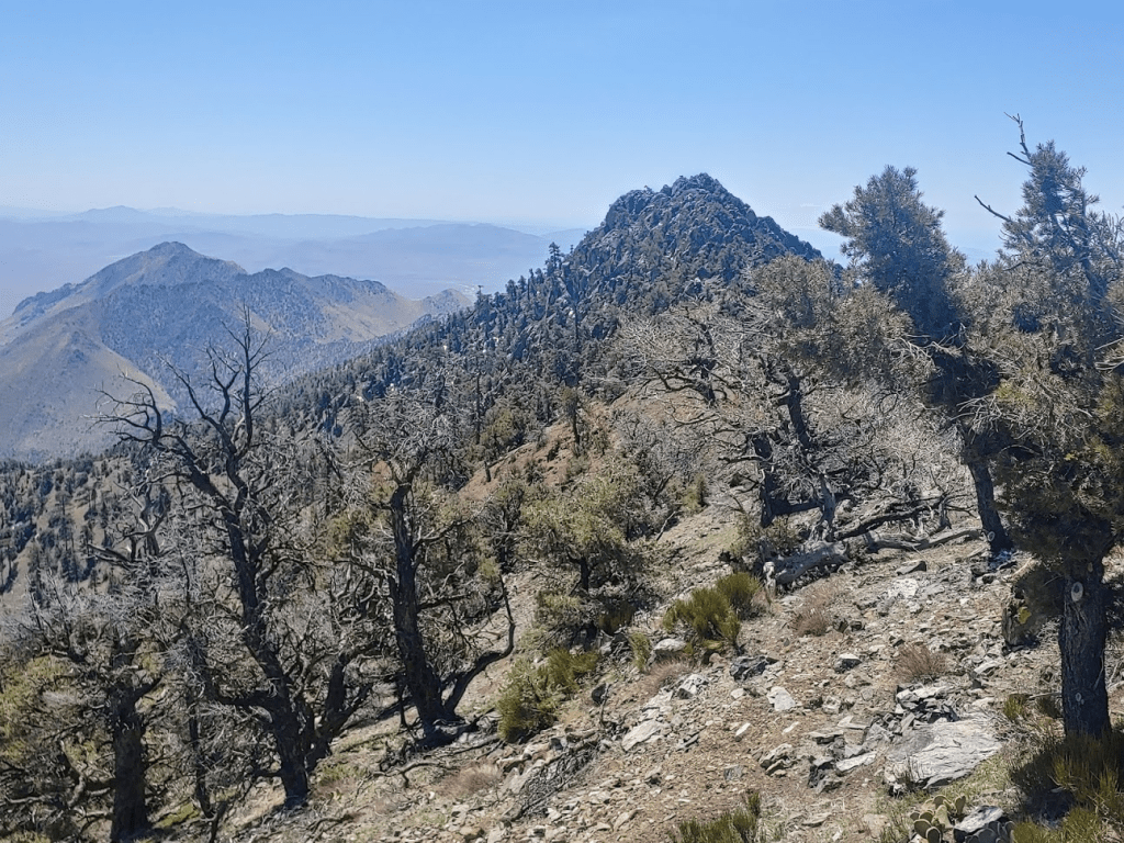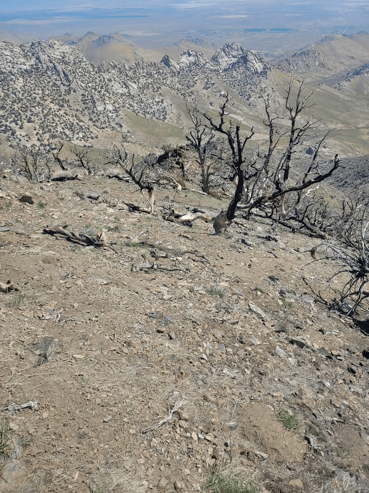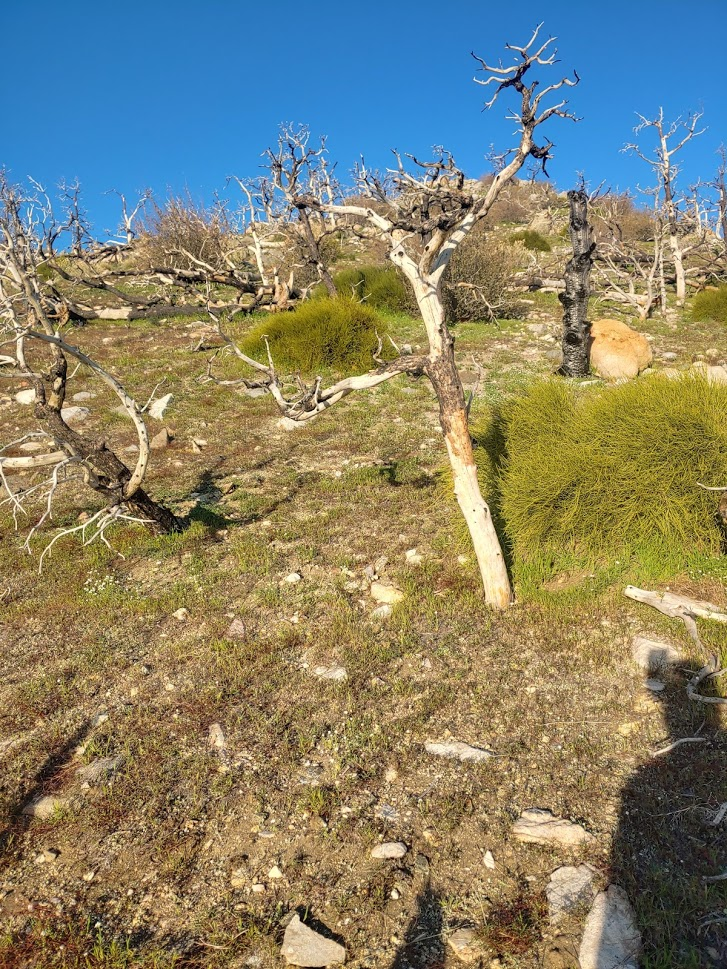 The footing was solid, so I made good time up the ridge. There were a lot of burned trees in the area.