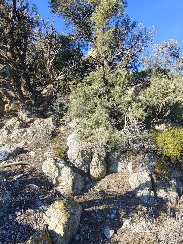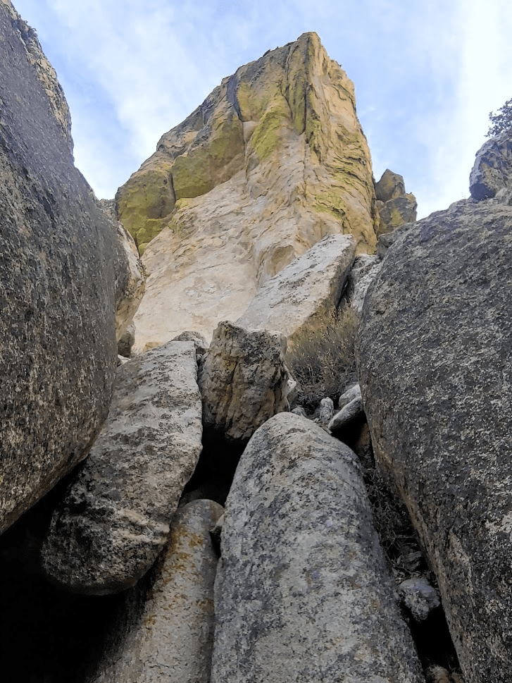 At 1.52 miles, I passed a point labeled on Peakbagger as West Lamont (7320 feet). I had read that its large summit boulders required technical climbing.