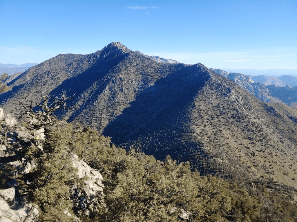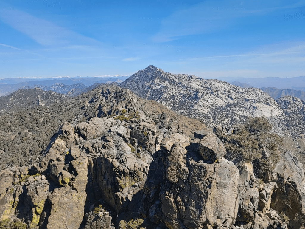 Directly east was a peak labeled on Peakbagger as East Lamont. Continuing to East Lamont would have added about 1 mile round trip. The summit block is reported to be class 3, so I decided not to make the extra effort since I was unsure I would even be able to summit. Plus, I was anticipating about 10 miles on my 2nd hike of the day so wanted to conserve energy. Directly behind East Lamont is another SPS peak called Spanish Needle. Spanish Needle would be the only SPS peak in the area I wouldn’t be visiting this weekend (I had similar concerns of a class 3 summit).
