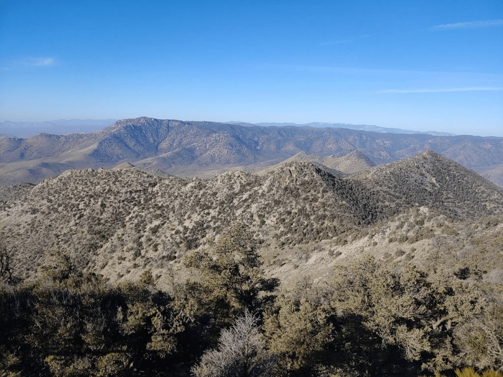 This was similar to the climb up to Lamont BM, just longer. There were a few sections where the brush got kind of thick, but it wasn’t too bad. It was now mid-afternoon and it was very warm in the hot sun, which made it a little tougher.