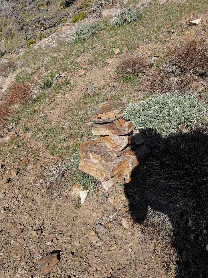 I soon reached the PCT again and started heading north the way I came towards Sawtooth. I passed 2 northbound PCT hikers and exchanged hellos with them. I was surprised to see any thru hikers on the trail. To my knowledge, most PCT hikers had canceled their hikes this year due to the pandemic. Most of the small towns they rely on for resupply were discouraging hikers from passing through to try to limit exposure to their small communities. Plus, the PCT passes through some areas (like national parks) which are closed for the time being. Anyway, I continued up the trail until the 7.28 mile mark where I started climbing cross country up the south ridge of Sawtooth. I was at 6231 feet so it would be an 1800 foot climb in about 1.3 mile (very steep!).